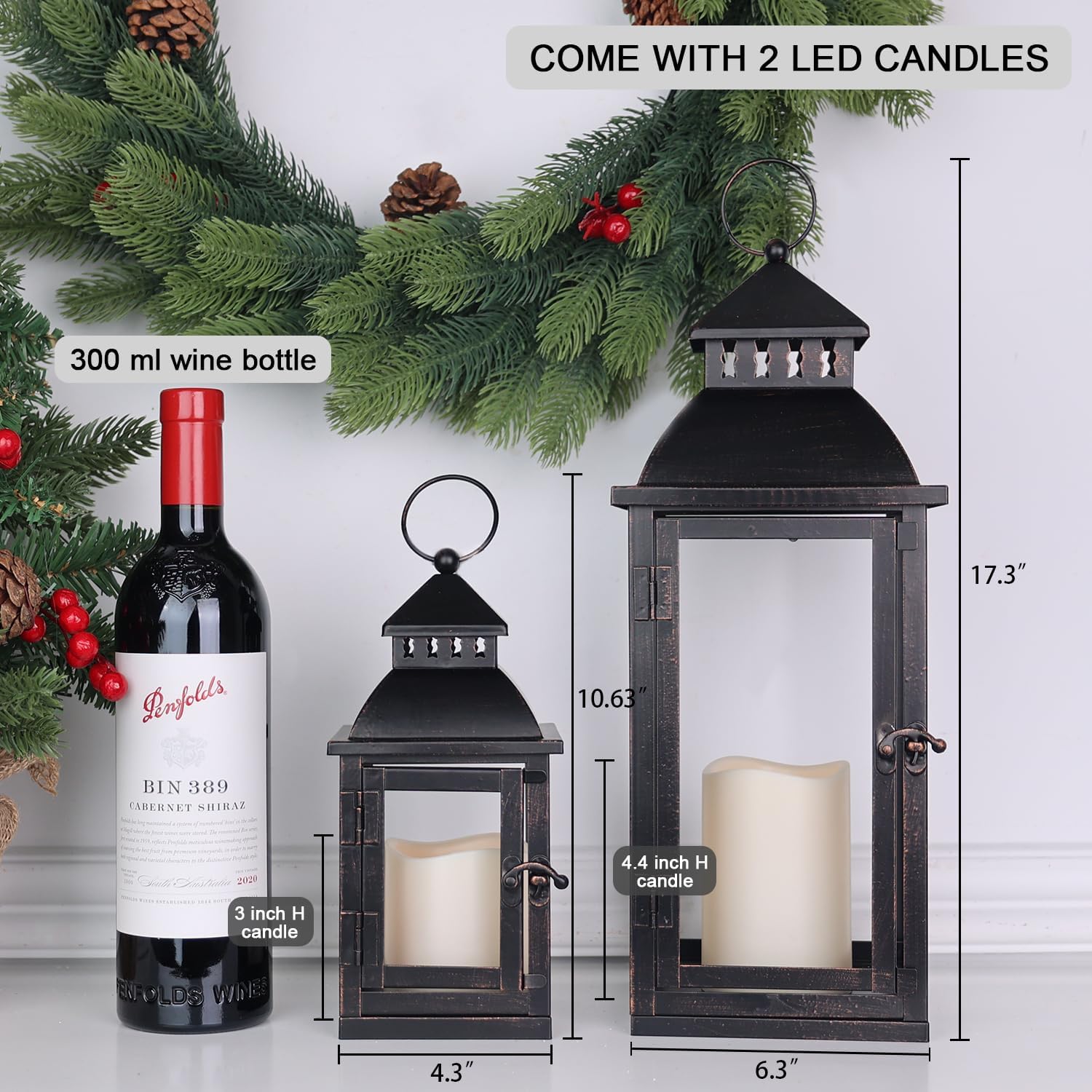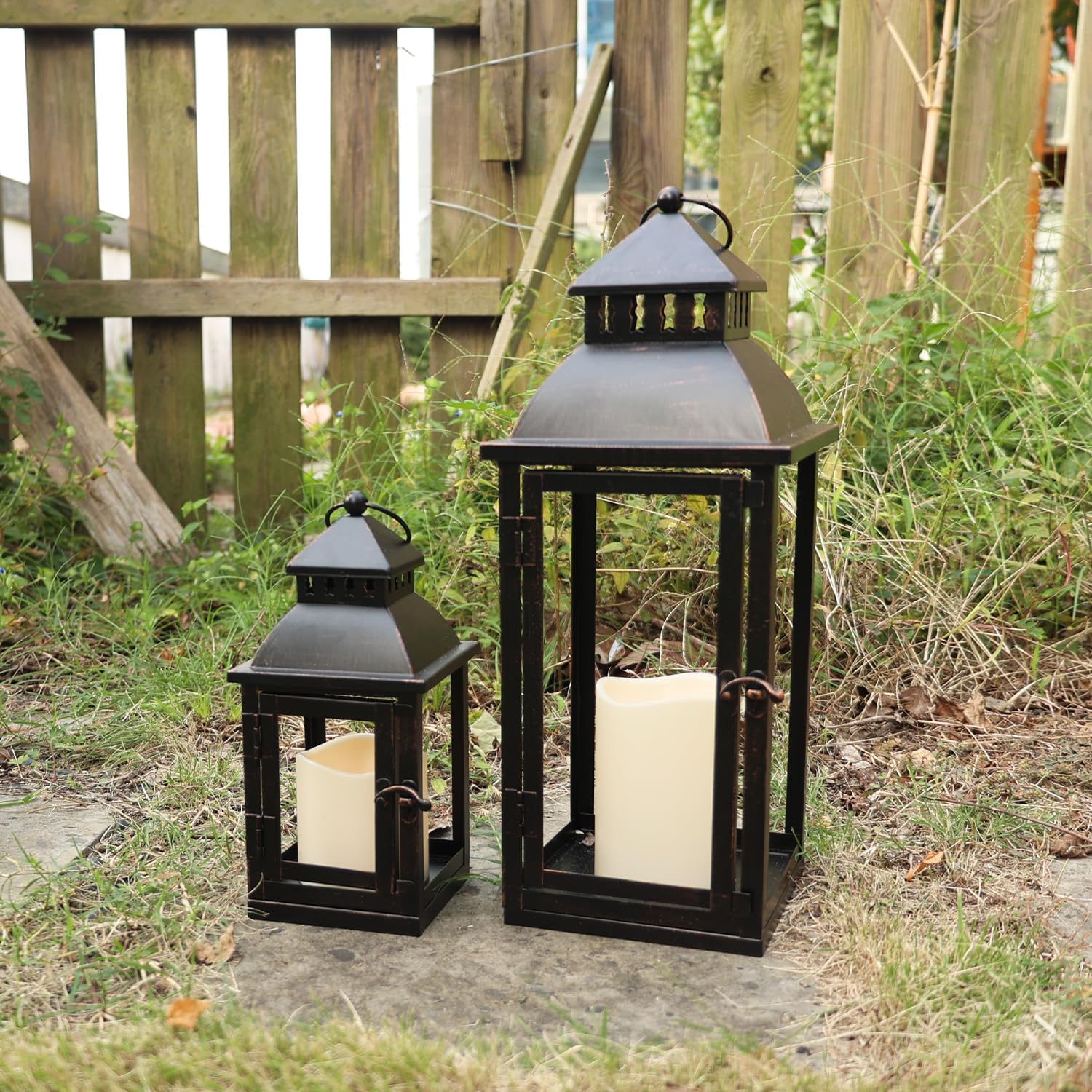 NEEDOMO LED Lanterns Decorative Outdoor&Indoor, Set of 2 Large Bronze Metal Lantern Decor with LED Candle, Lantern Decor for Porch, Patio, Garden, Balcony, Wedding, Spring Decorations (NO Glass)