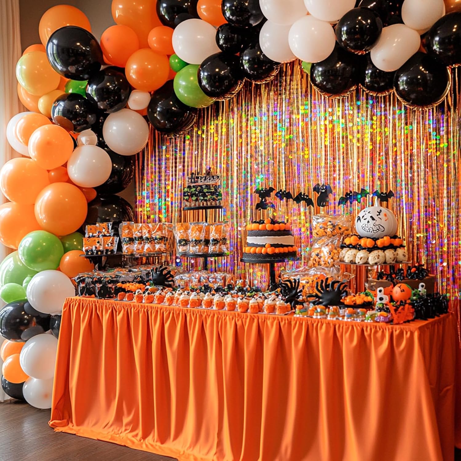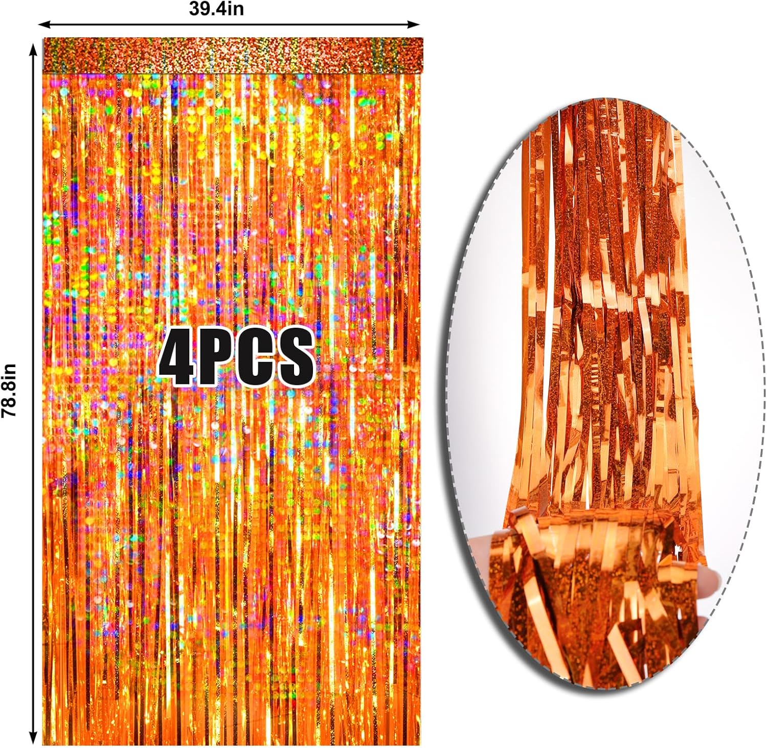 • Orange Fringe Backdrop: You will get 4 Pcs orange tinsel backdrop. Size: 6.6ft*3.3ft. The foil fringe curtains are perfect for the door or wall to create an impressive decoration for parties, events, and photo booths.
