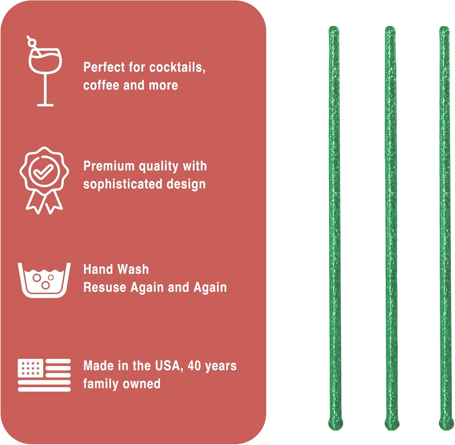 • FUN AND DURABLE 6-inch long, crystal party sticks are made of reusable plastic and are premium quality. Each package includes 100 festive drink mixer sticks molded in pink, gold glitter or clear plastic.