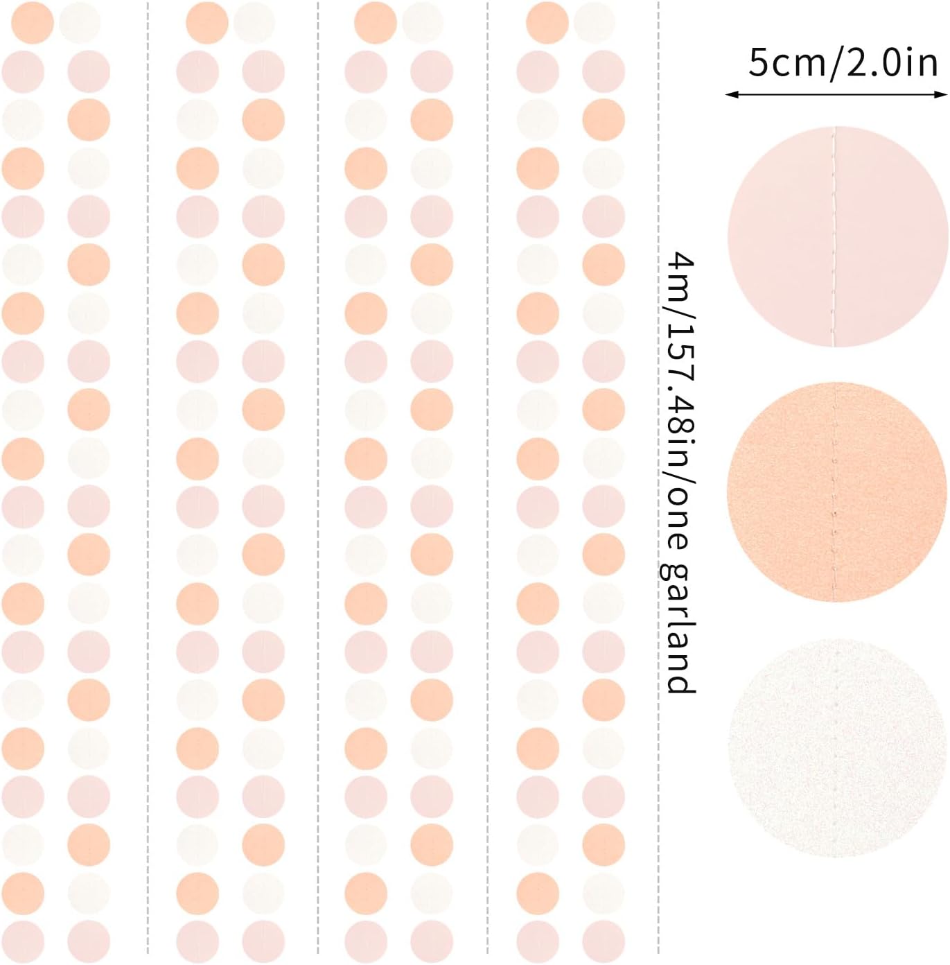 Peach-Pink White Party-Decorations Paper Garland - 52ft Princess Birthday Streamers Banner,Boho Bridal Baby Shower Bachelorette Wedding Hanging Supplies Decor Hugfond