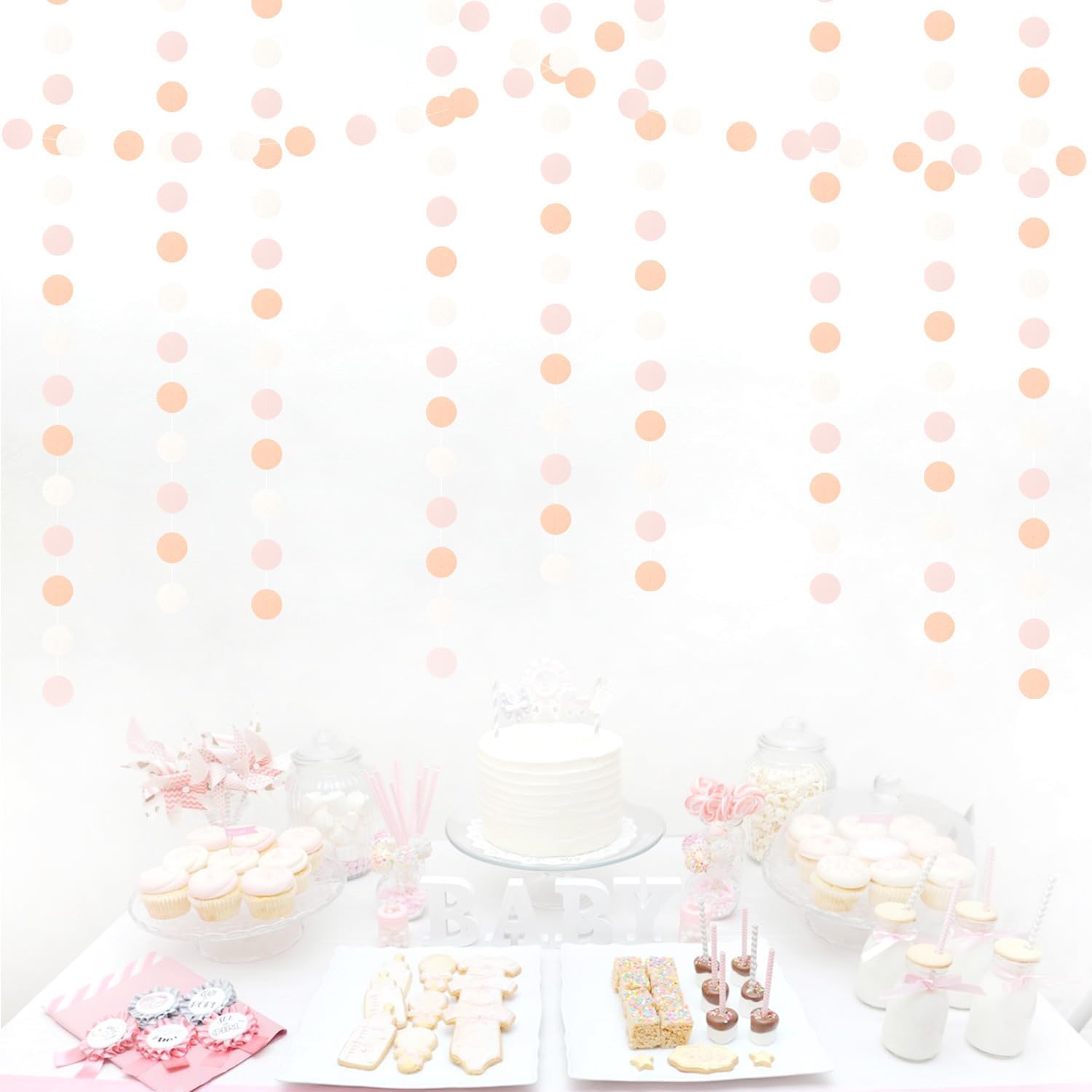 • 【Wide Use】These streamers garlands are great for indoor and outdoor events such as princess peach pink birthday decorations,boho baby shower baby shower, light pink party decor ceiling decorations.