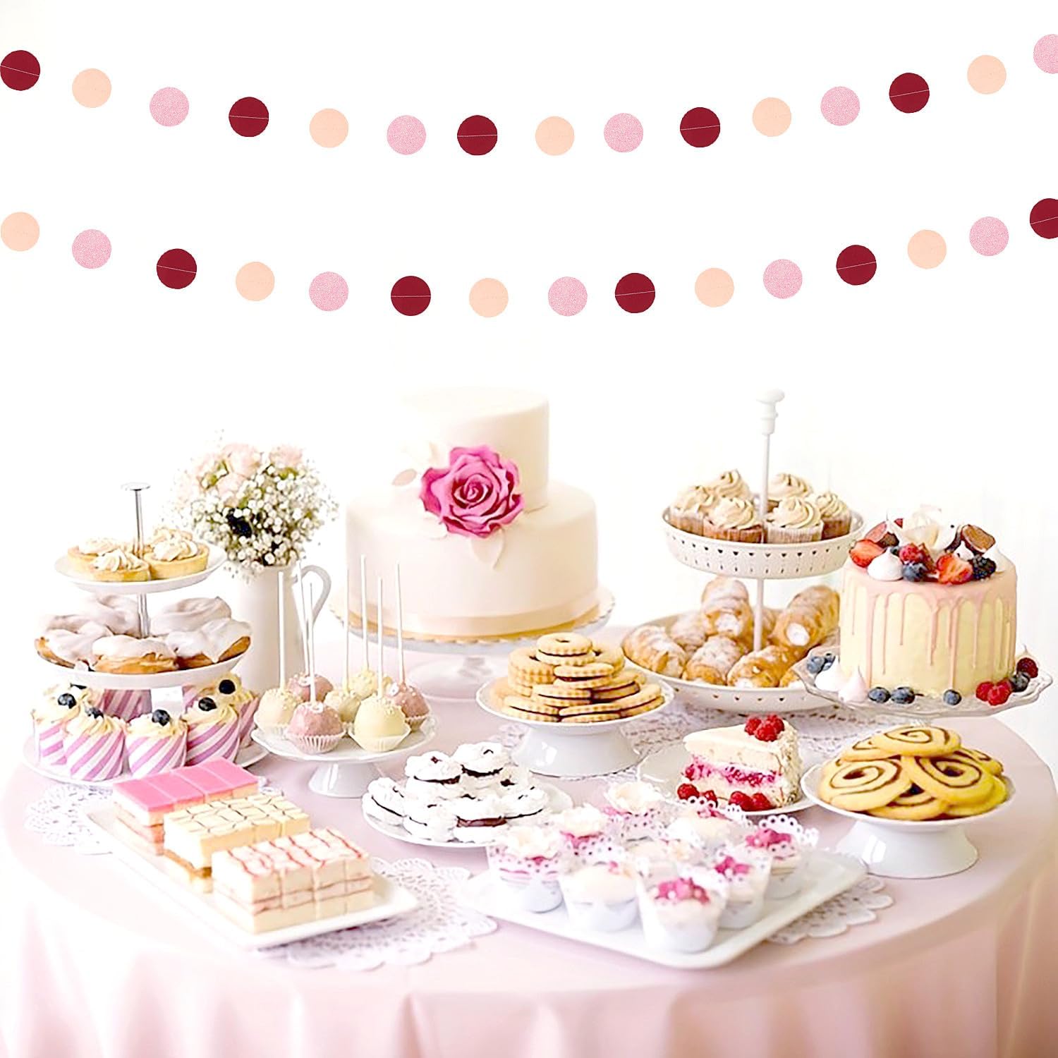Burgundy Pink Peach Party-Decorations Paper-Garland - 52ft Rose Gold Glitter Streamers Banner,Birthday Princess Baby Bridal Shower Wedding Hanging Supplies Decor Hugfond