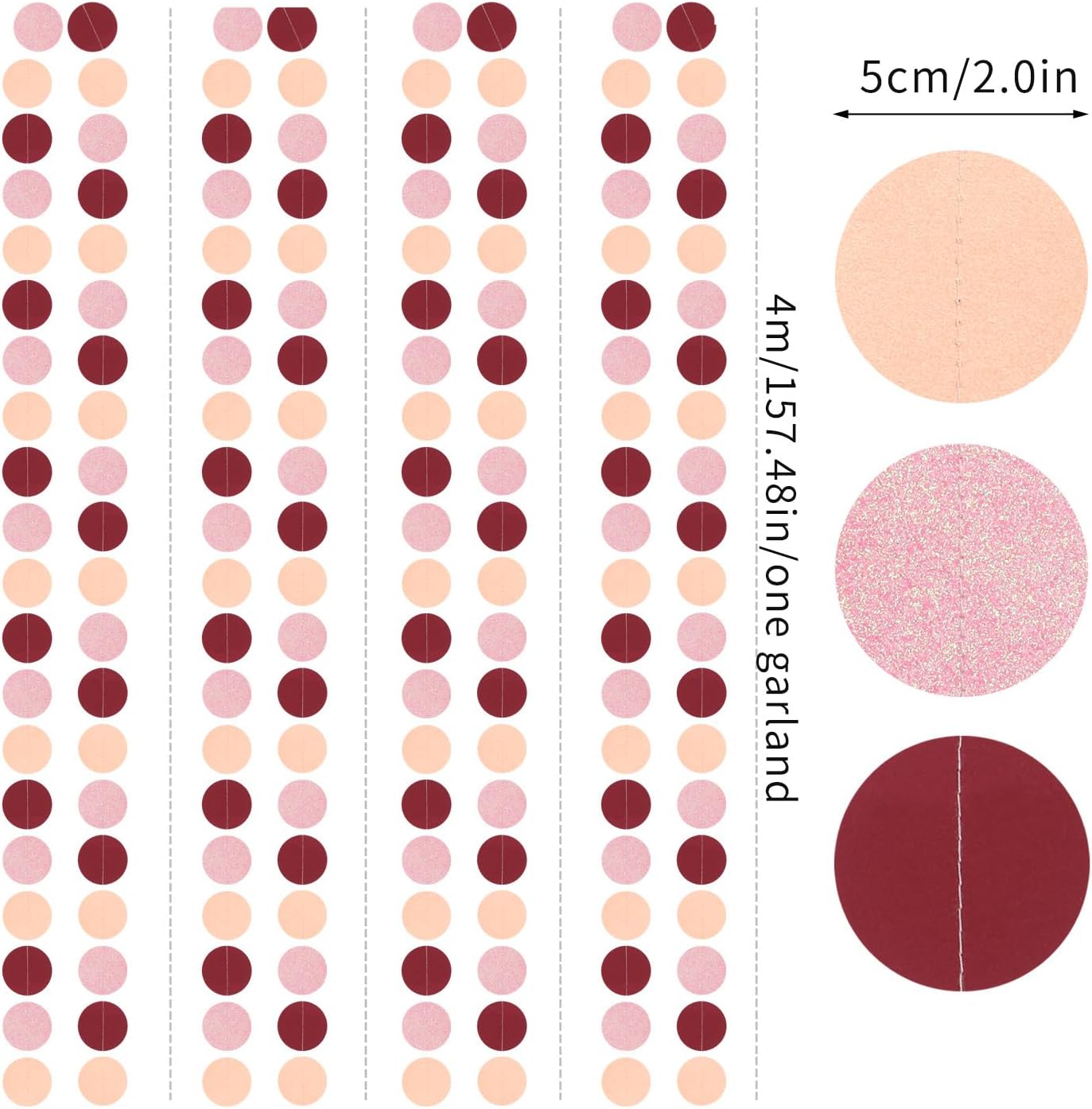 • 【Burgundy Pink Decorations Kit Includes】The party garlands includes 4pcs paper garlands, each backdrop bunting is 13 feet/ 4 meters long, total length is 52 feet/16 meters.