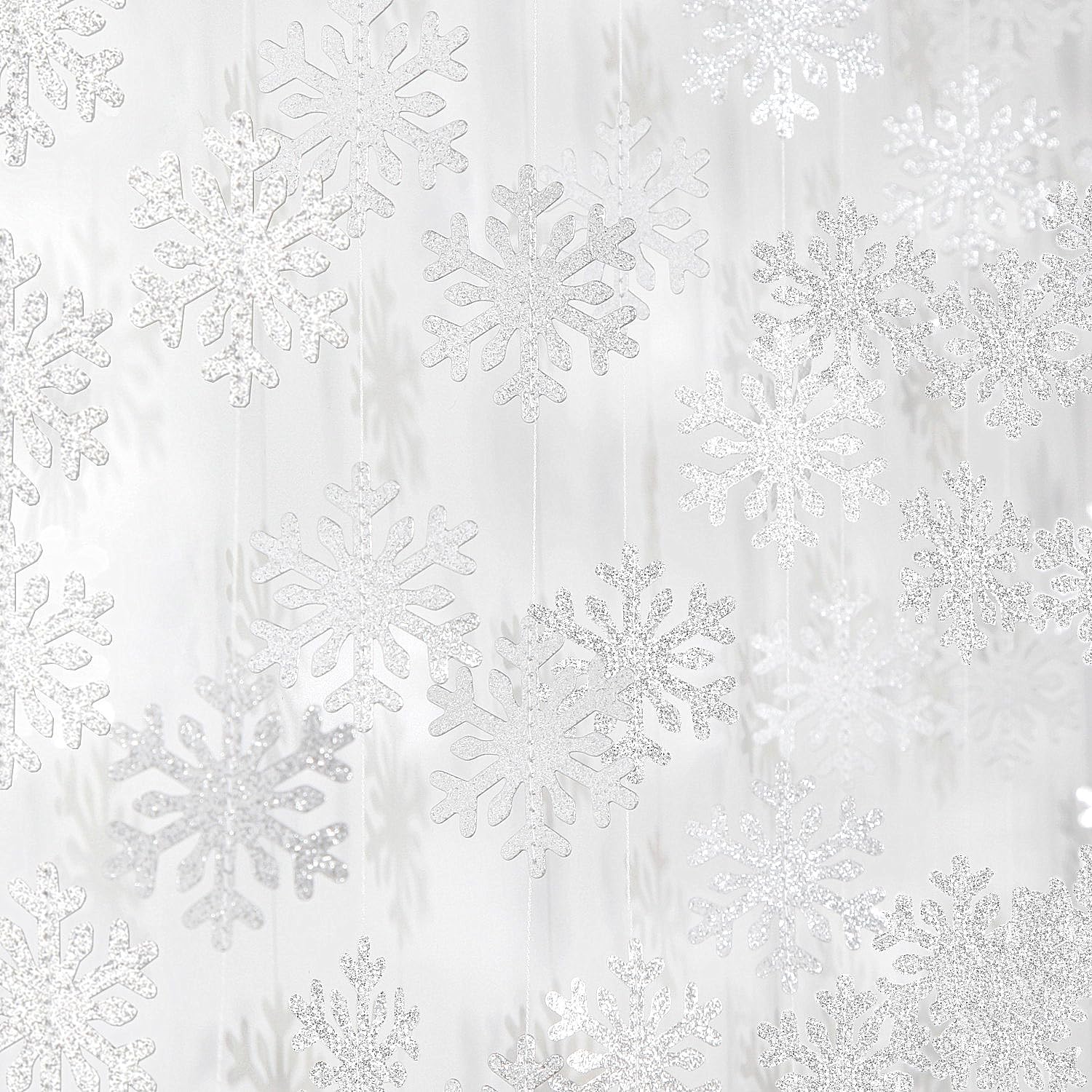 • 【Wide Use】These streamers garland are great for indoor and outdoor events such as christmas ornaments,frozen birthday party ,winter wonderland decorations,silver christmas decor,snowflake decorations,vintage snow party decorations, baby shower ,wedding,classroom,office ceiling decorations.