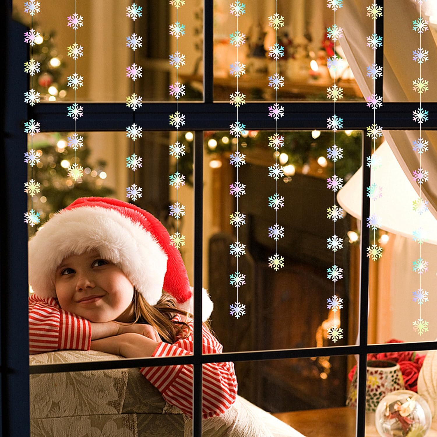 • 【Snowflake Iridescent-Holographic Christmas Decorations Kit Includes】The party garlands includes 4pcs paper garlands, each backdrop bunting is 13 feet/ 4 meters long, total length is 52 feet/16 meters.