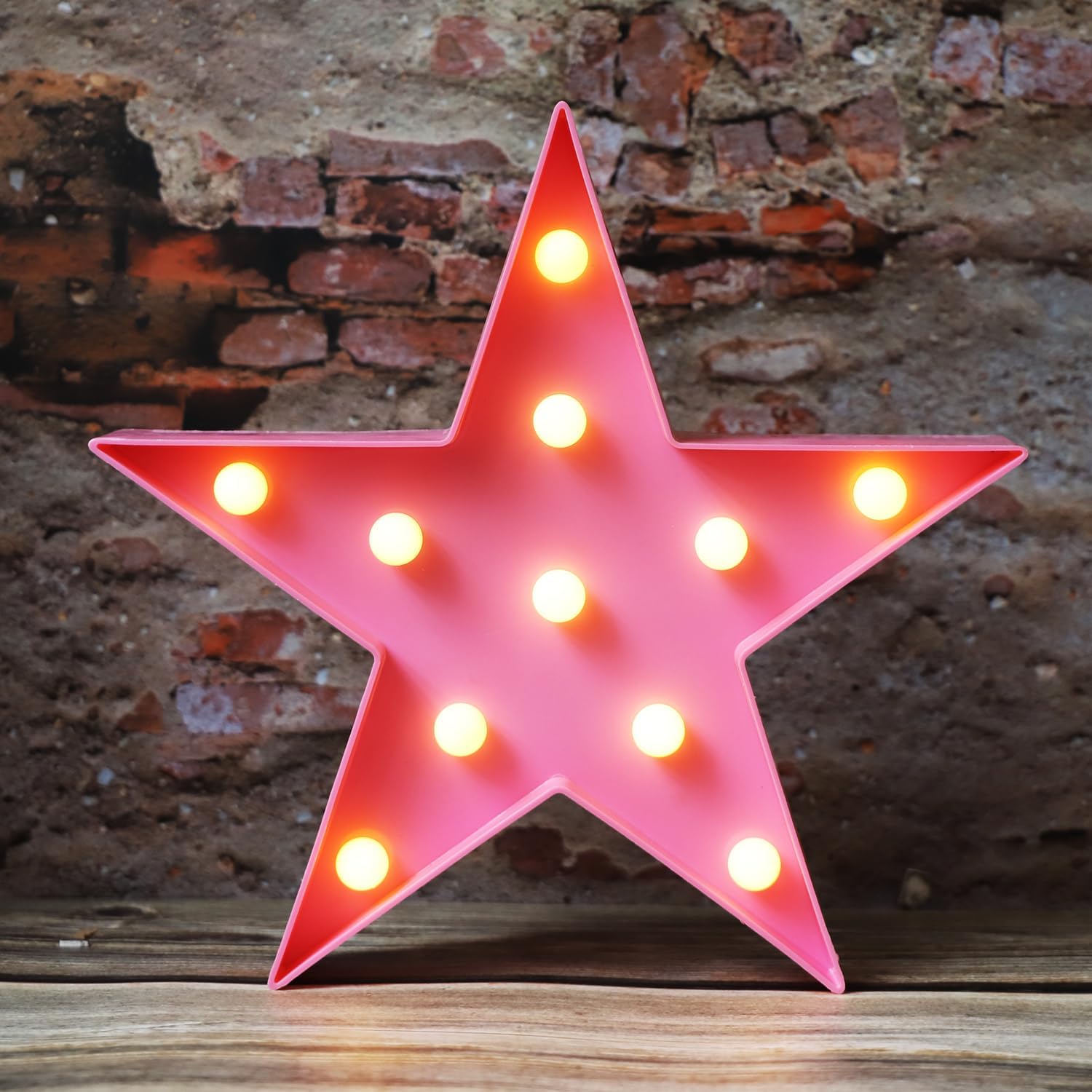 LED Marquee Star Sign Night Light, Battery Operated Star Shaped Desk Table Lamp for Kids, Baby, Child, Girl Gift, Nursery Room, Wall Decor (Pink)