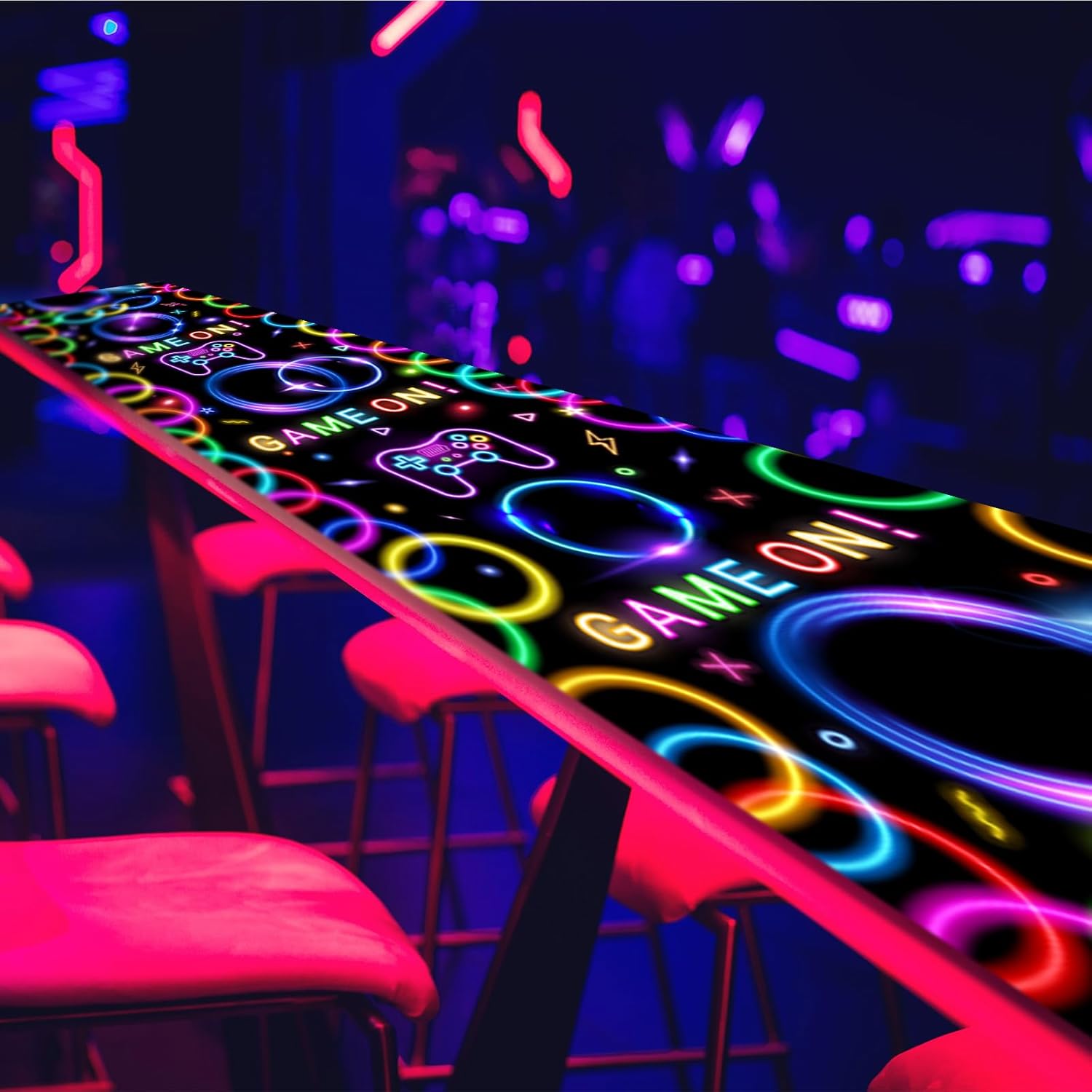 Haull 118 x 39 Inch Neon Light up Dance Floor Glow in The Dark Runner UV Reactive Blacklight Floor Aisle Runner Decor Wall Props for 80s 90s Neon Birthday Party Decorations(Game on)