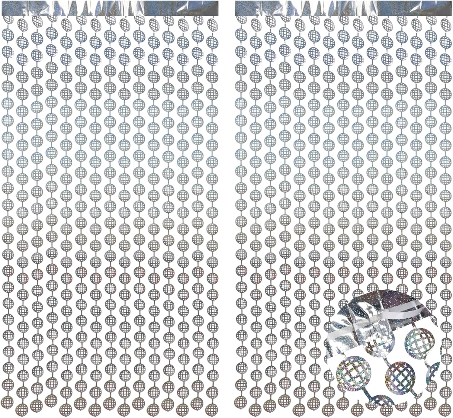 BRAVESHINE Hanging Balls Party Streamers Backdrop - 2 Pack Silver Tinsel Foil Curtain Photo Fringe Backdrop for 70s 80s Party, Birthdays, Bachelorette, Engagement, Music, Dance,New Years Decorations