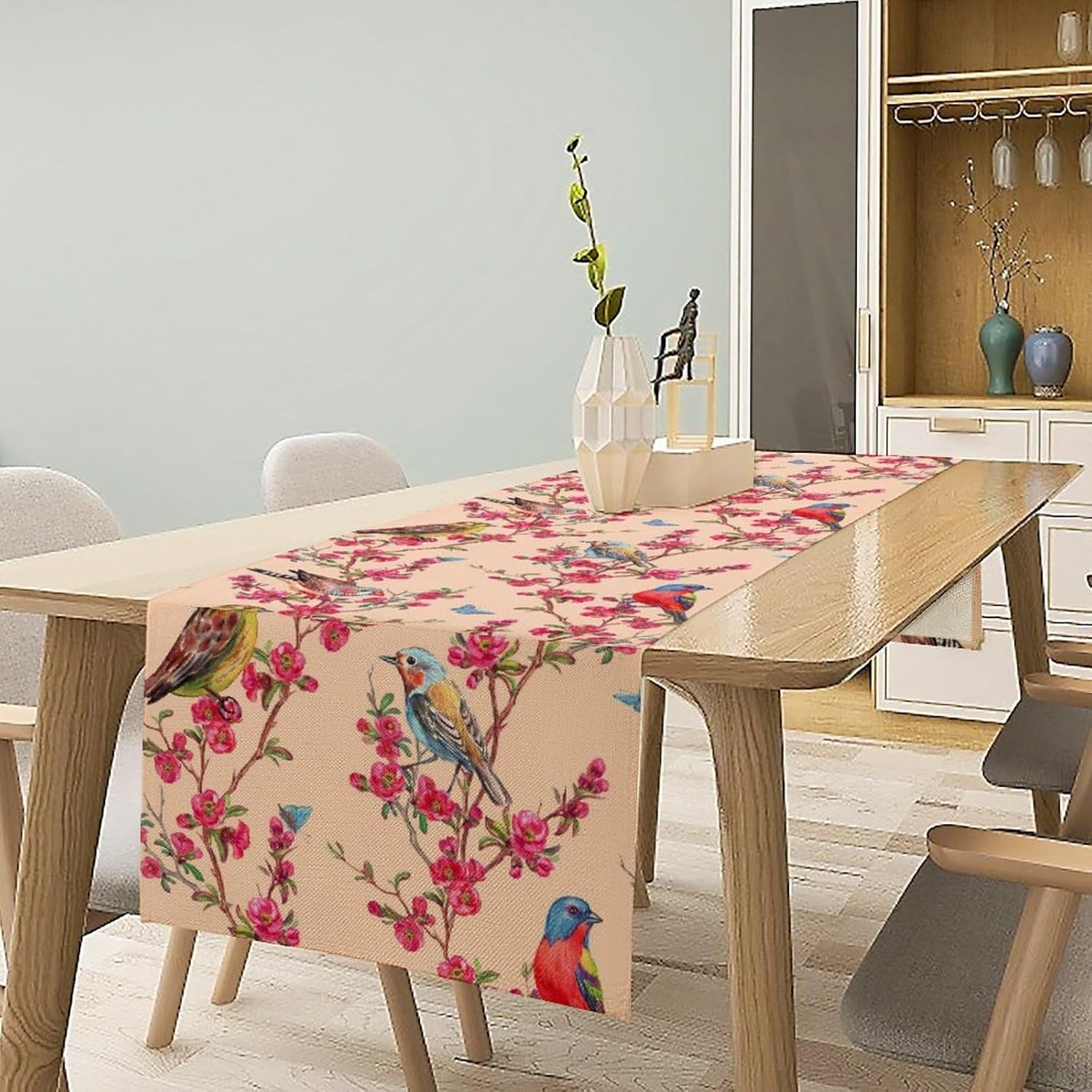 Floral Butterfly Table Runner Seasonal Spring Flower Bird Table Decoration Table Runner for Home Party Decoration 13x36 Inch