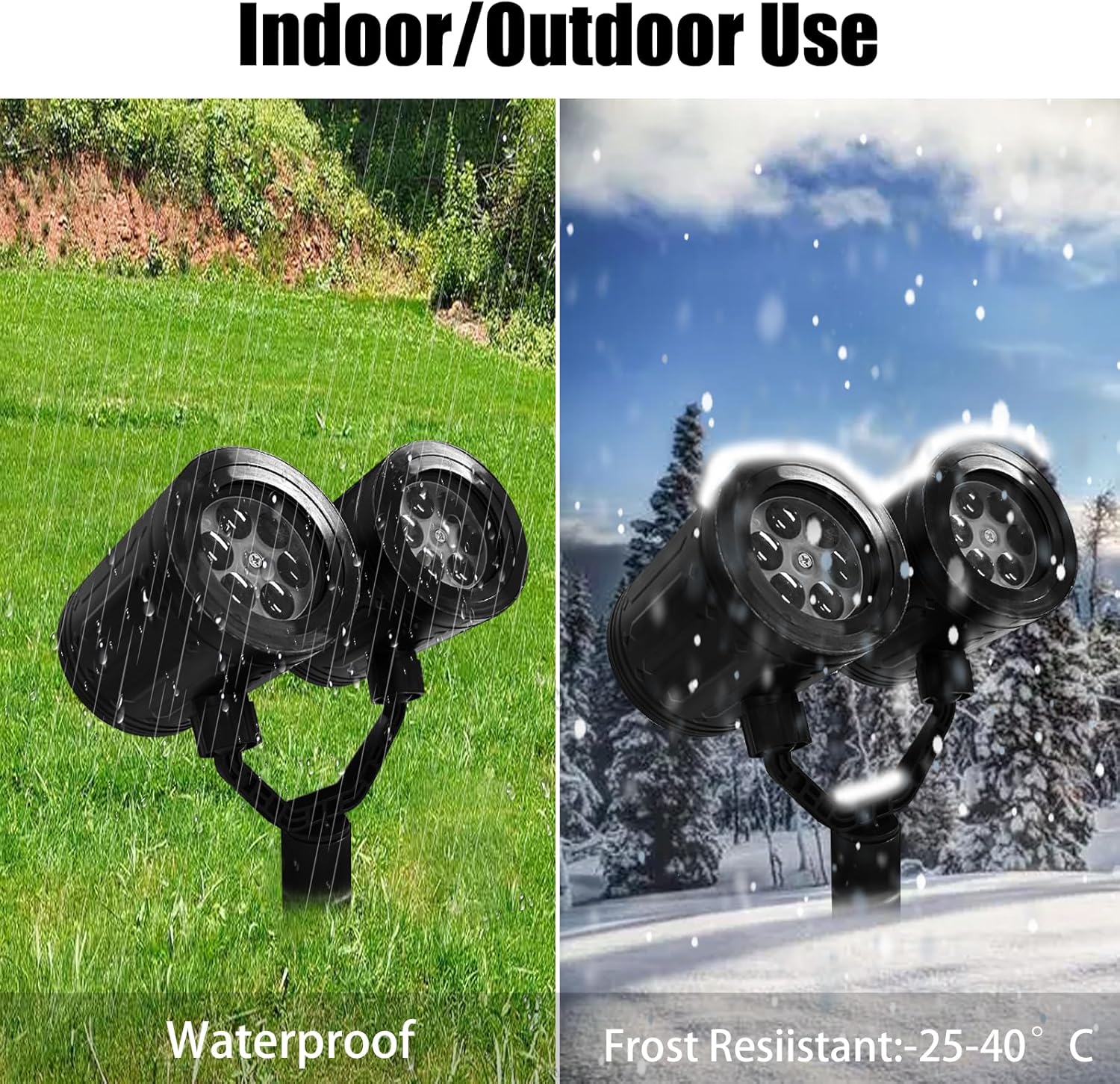 • 2024 Upgraded Christmas projector light with 4 different dynamic snowflake patterns, the dual head design allows for a wider coverage of snowflake projections and clearer patterns. Owning this snowflake projection lamp will bring delightful visual enjoyment to your family and friends.