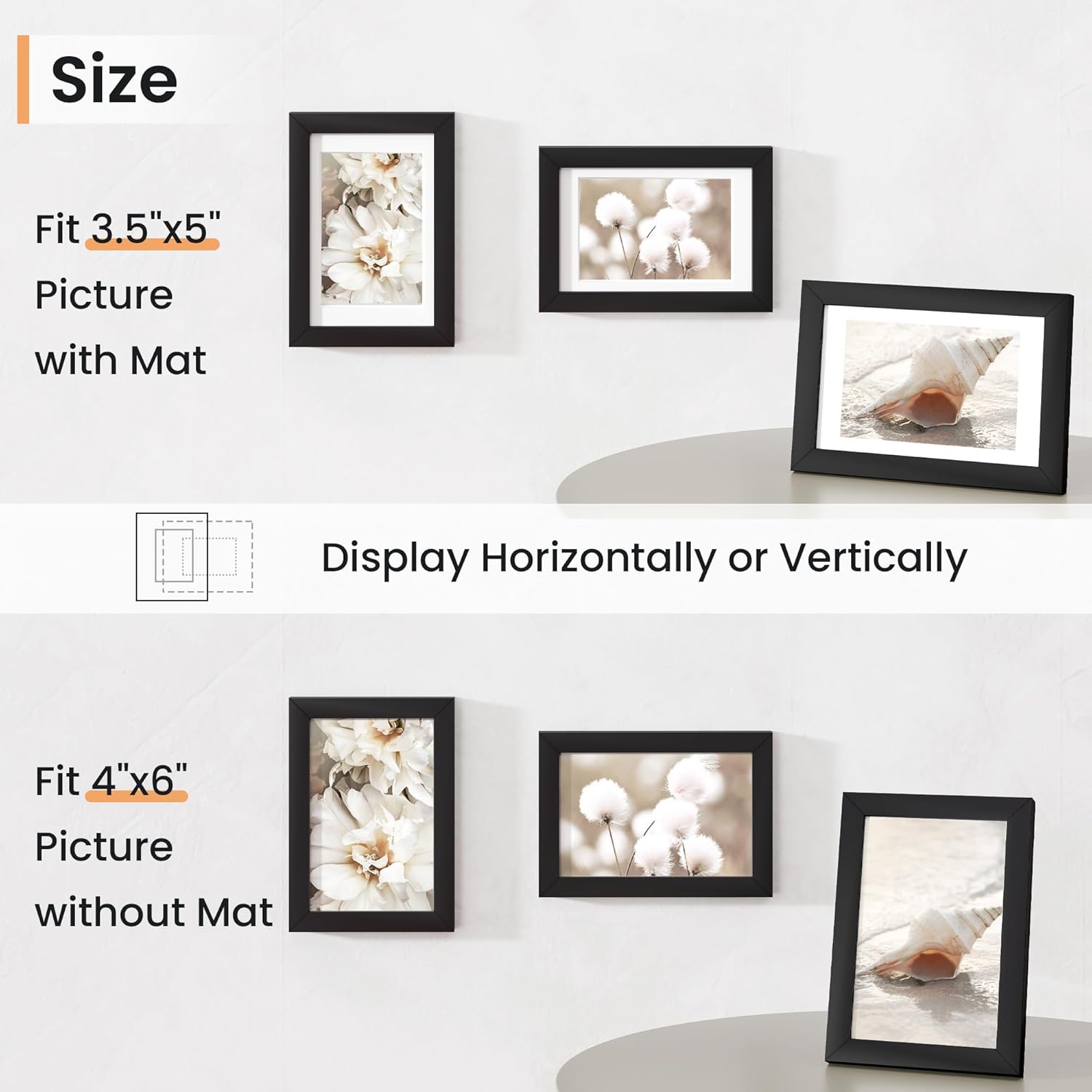 4x6 inch Picture Frame, 4x6 Photo Frames with 3.5x5 Removable Mat - High Definition Plexiglass - Vertical and Horizontal Display - Wall Hanging Frame - Black, 12 Pack