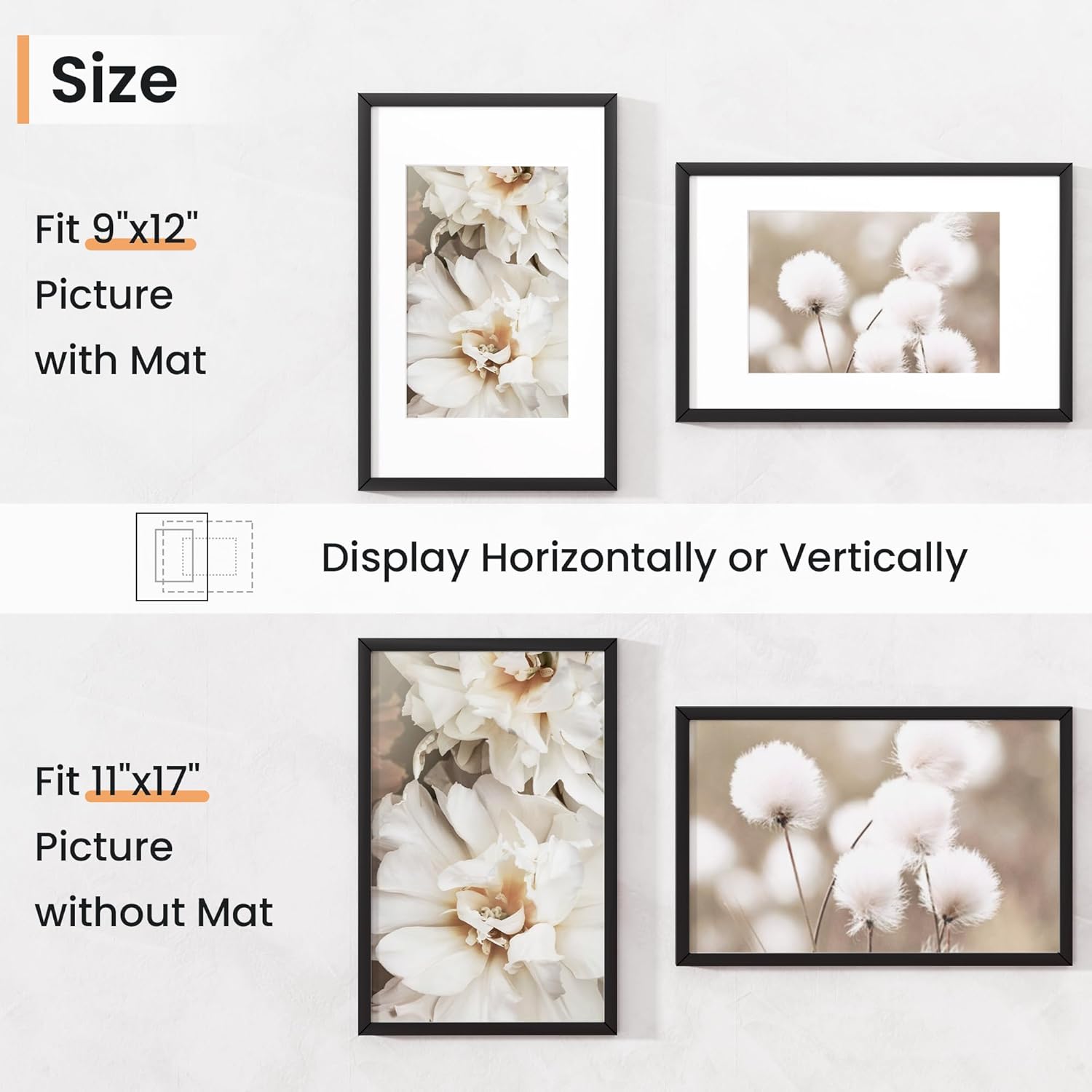 11x17 inch Picture Frame,11x17 Photo Frames with Removable Mat - High Definition Plexiglass - Vertical and Horizontal Display - Wall Hanging Frame - Black, 3 Pack