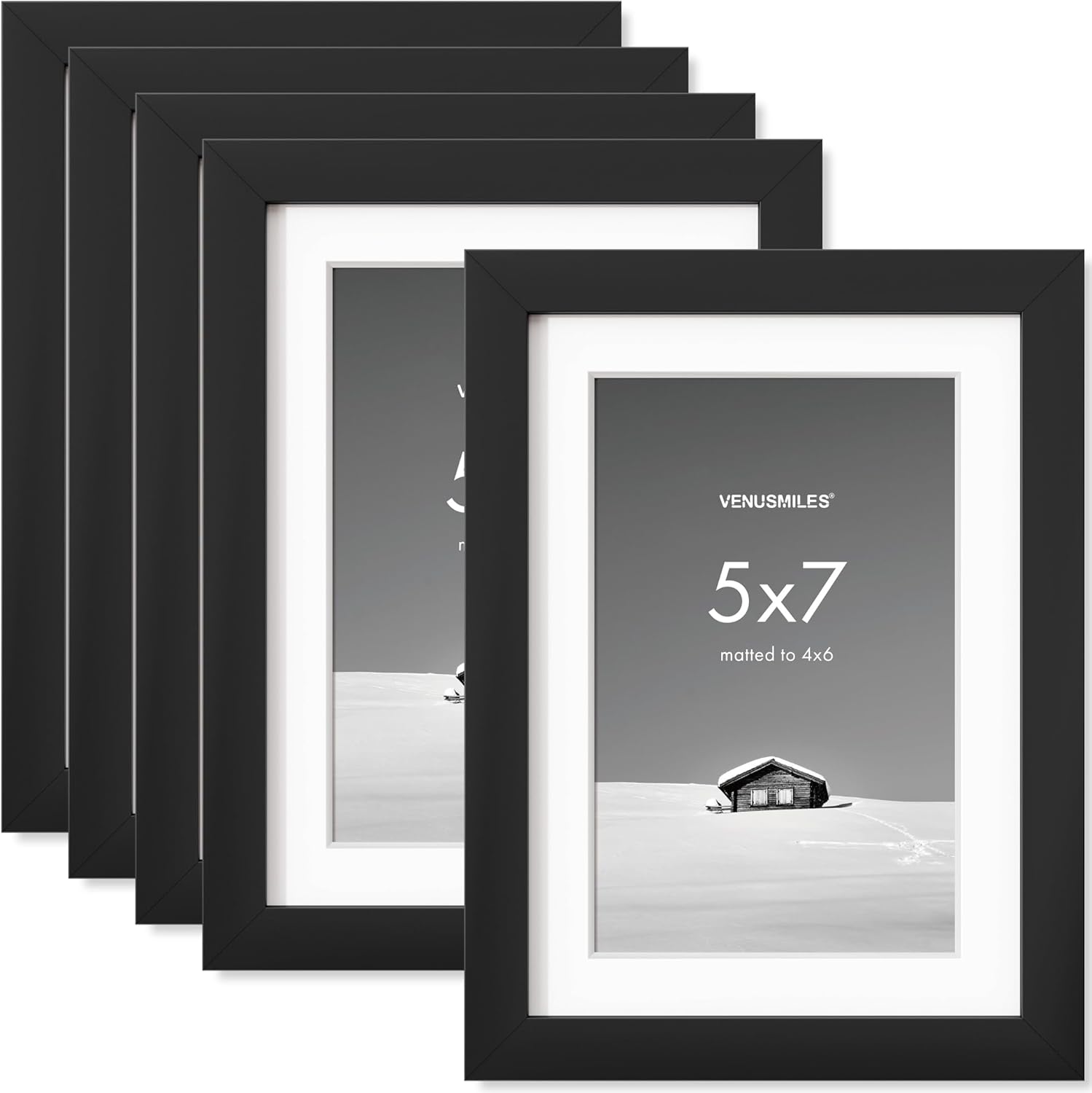5x7 inch Picture Frame, 5x7 Photo Frames with 4x6 Removable Mat - High Definition Plexiglass - Vertical and Horizontal Display - Wall Hanging Frame - Black, 5 Pack