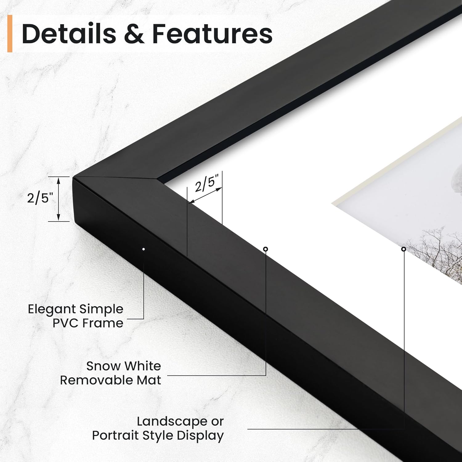 • Vertical & Horizontal Display - Our wall photo frames are versatile and easy to clip and hang. You can mount this plastic picture frame horizontally or vertically, with hanging hardware included. This picture frame maximizes your available space.