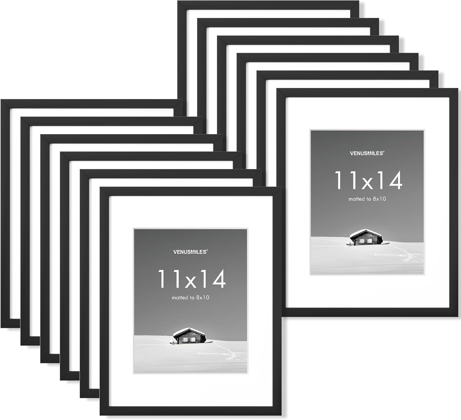 11x14 inch Picture Frame, 11x14 Photo Frames with 8x10 Removable Mat - High Definition Plexiglass - Vertical and Horizontal Display - Wall Hanging Frame - Black, 12 Pack