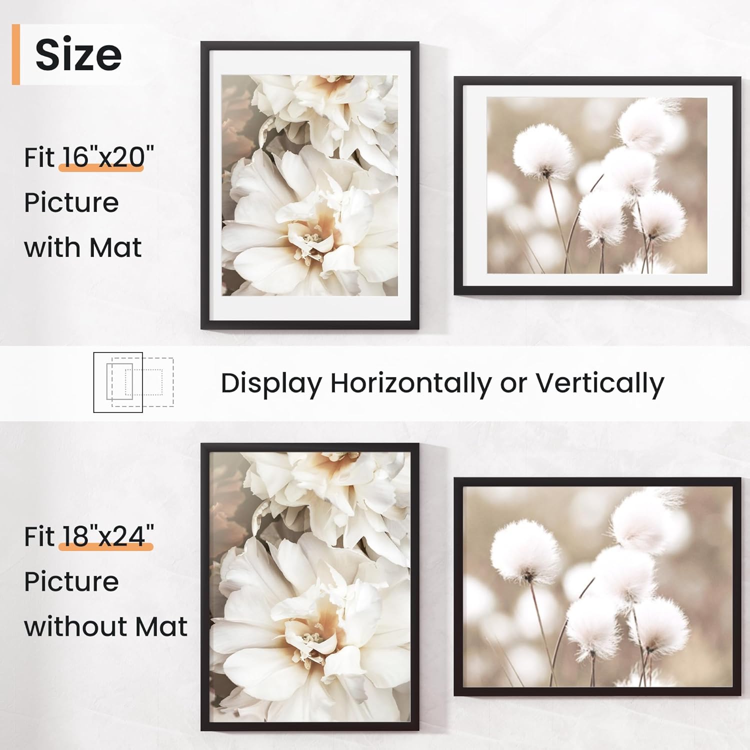 • High-Quality: Our 18x24 picture frame is made of environmentally friendly plastic, strong and durable. With a moisture-proof backplane design, the angle is hand-polished to stop scratching your skin. Use a polished polycarbonate board front to see your photos clearly.