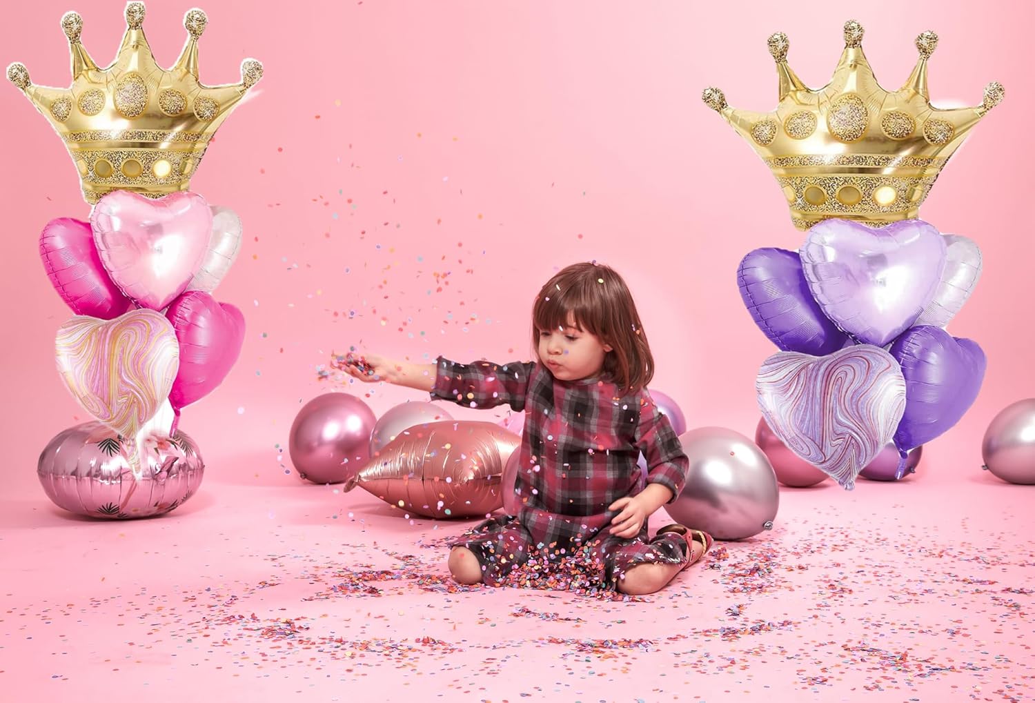 • Festive Balloon Set: This set includes 2 golden crowns, 10 heart-shaped balloons,perfect for birthdays, baby shower,or princess parties.