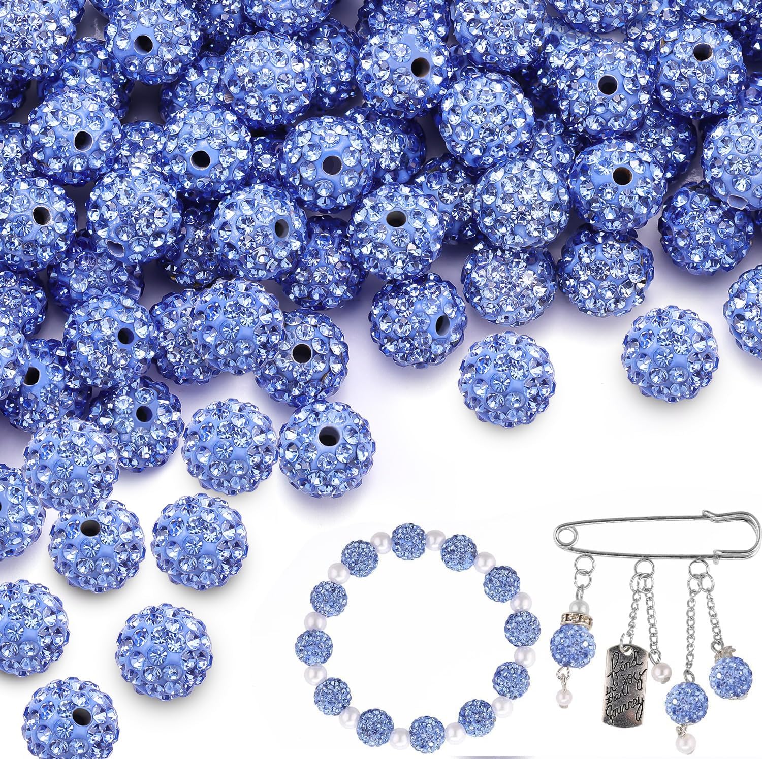 • ADEQUETE QUANTITY -- 200pcs Light Sky Blue rhinestone beads satisfy your crafting and sharing needs. 200 pcs can make about 8 bracelets solely with rhinestone beads (if 25 pcs for a single string)