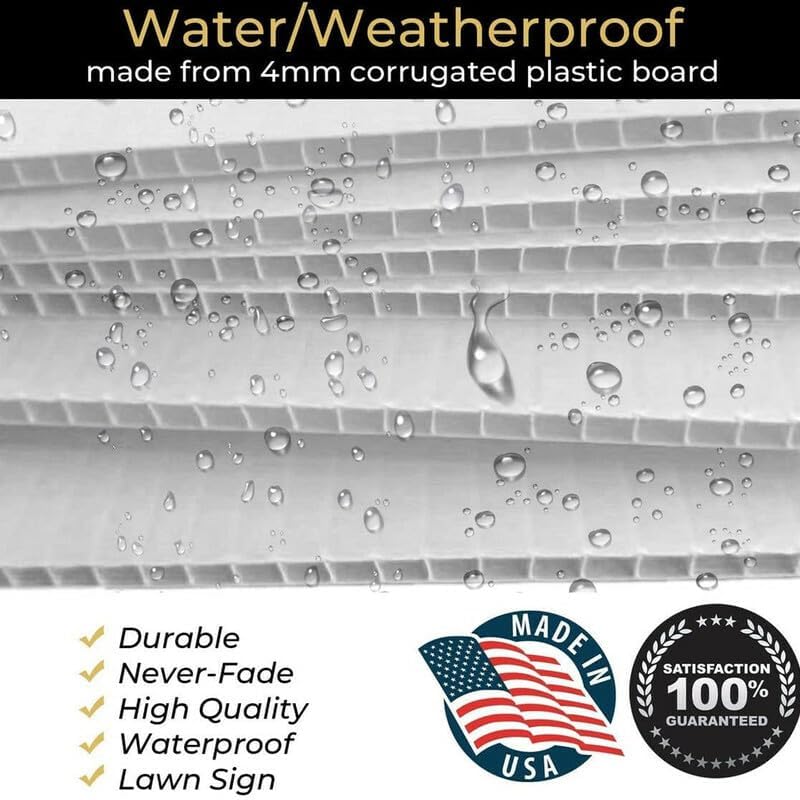 • Multiple size options: 12x18, 18x27, 24x36 inches. Our yard signs are printed 1-sided or 2-sided at your disposal with optional stand.
