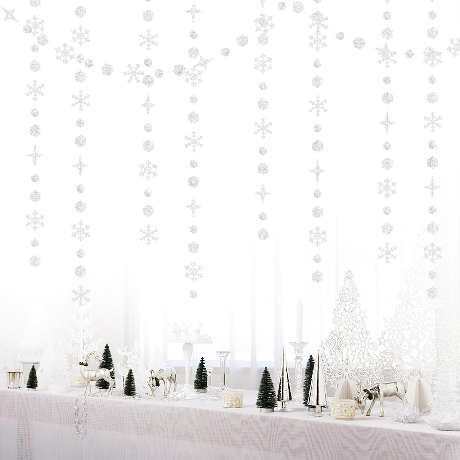 Snowflake-Snow White-Silver Christmas Party-Decorations Streamers - 52Ft White Winter Wonderland Frozen Hanging Paper Garland Banner,Birthday Wedding Baby Shower New Year Supplies Decor Hugtmr