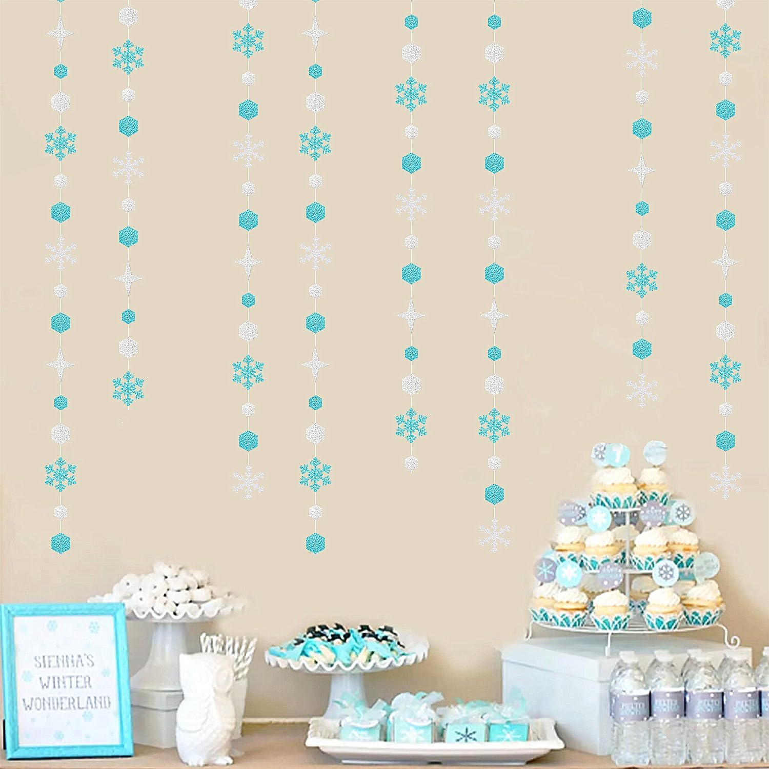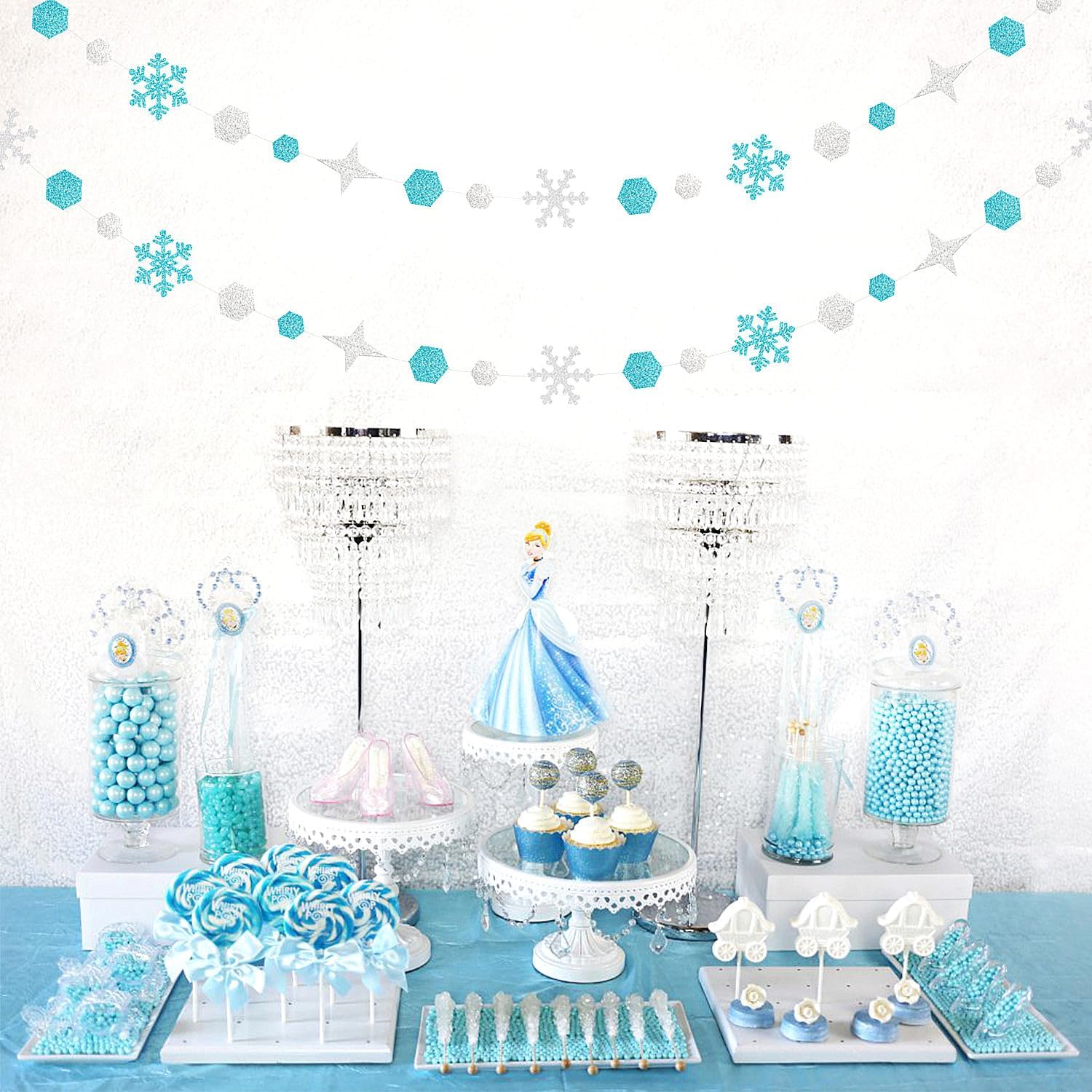 • WIDE APPLICATION: It can be decorated on ceilings, tables, windows, etc.Suitable for weddings,New Years decor,baby bridal shower decorations,christmas theme decorations,frozen birthday party supplies,snow white blue party decorations,winter wonderland party decorations.