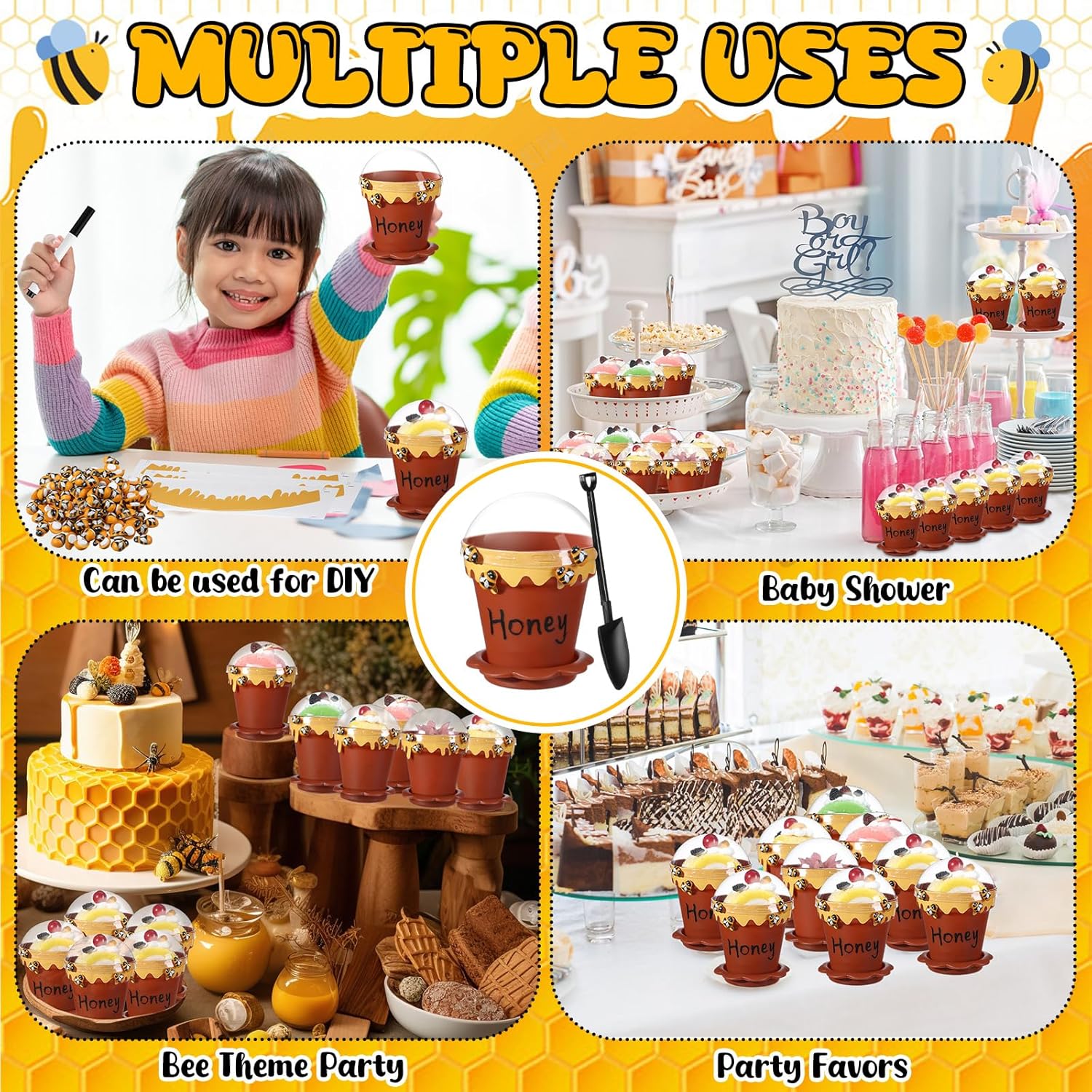 • Strong Material: These honey jars party favors are made of hard plastic material, strong and not easy to damage, lightweight and can be moved anywhere. No drainage hole design at the bottom to prevent dirtying the scenery