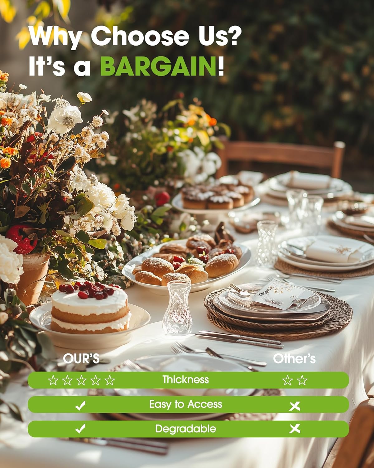 • FOR ALL OCCASIONS: With the universal size and multiple color options, our disposable table cloths are widely applicable to kinds of events, parties, church functions, work events, one-time use, and even practical everyday use.