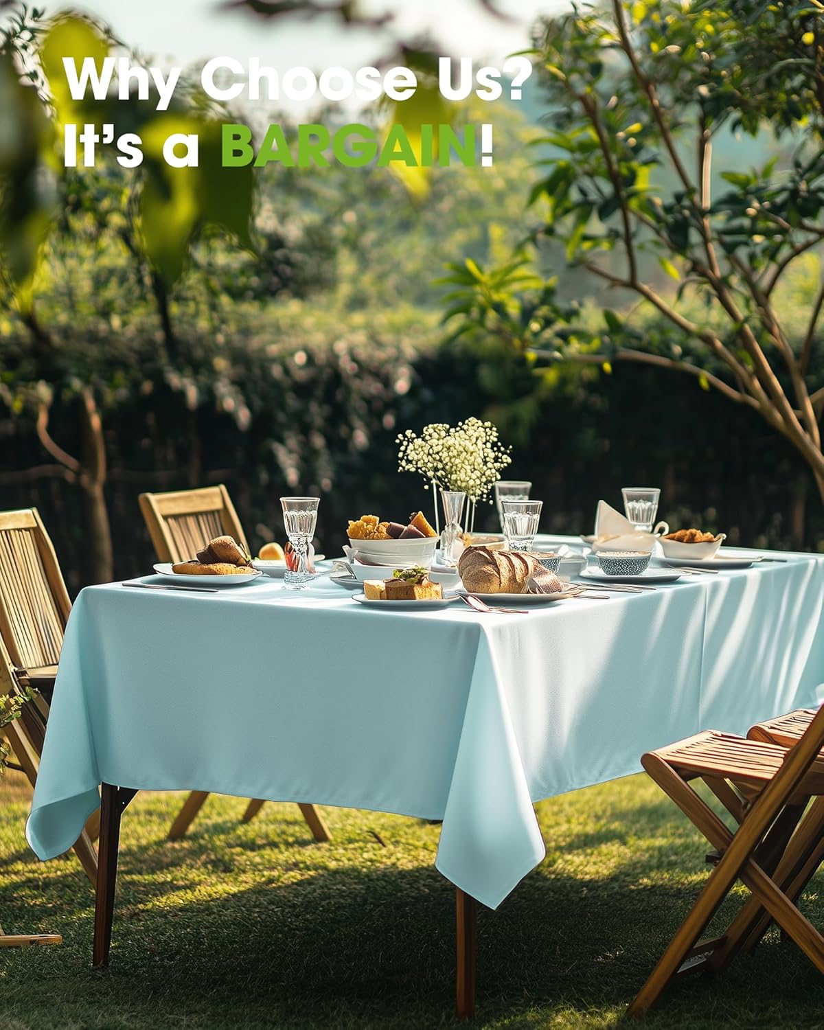 • FIT ANY SHAPE OF TABLES: Pureegg disposable tablecloths for rectangle tables measure 54" x 108" and fit tables up to 8 feet long. These plastic table cloths also fit smaller tables or various kinds of tables, like folding buffets, outdoor picnic, kitchen, and dining tables.