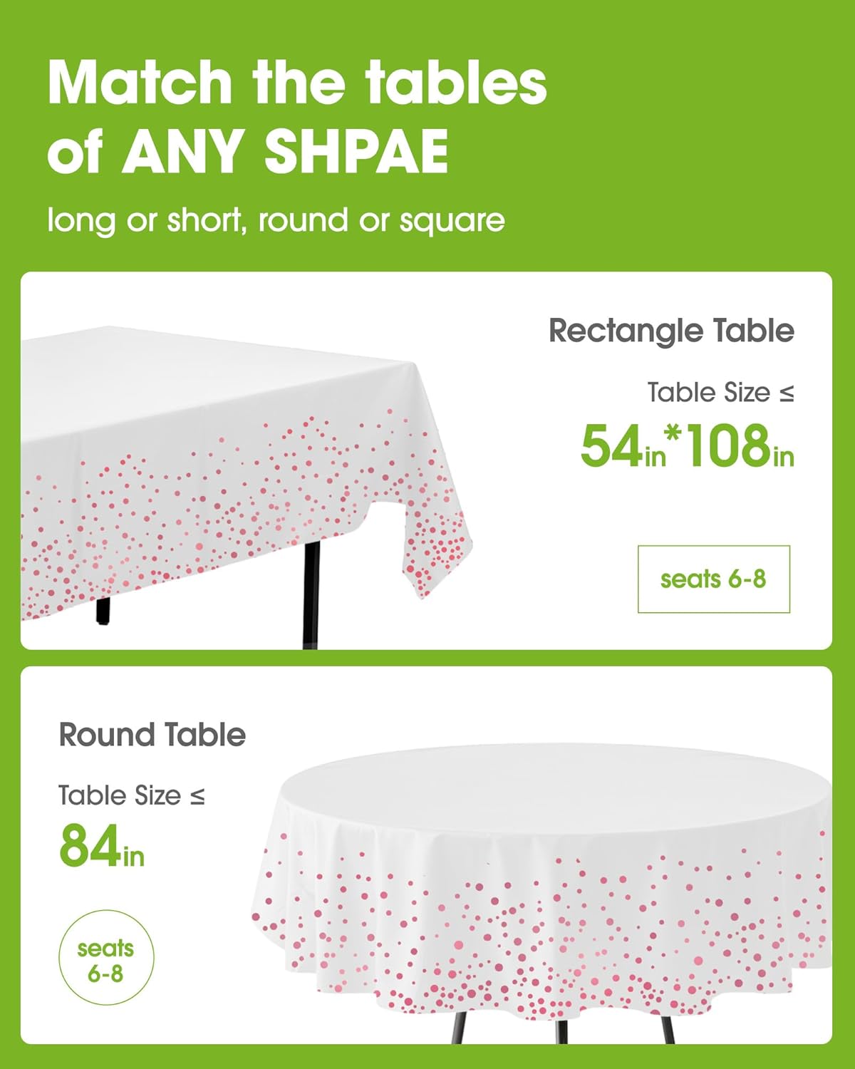 • FOR ALL OCCASIONS: With the universal size and multiple color options, our disposable table cloths are widely applicable to kinds of events, parties, church functions, work events, one-time use, and even practical everyday use.