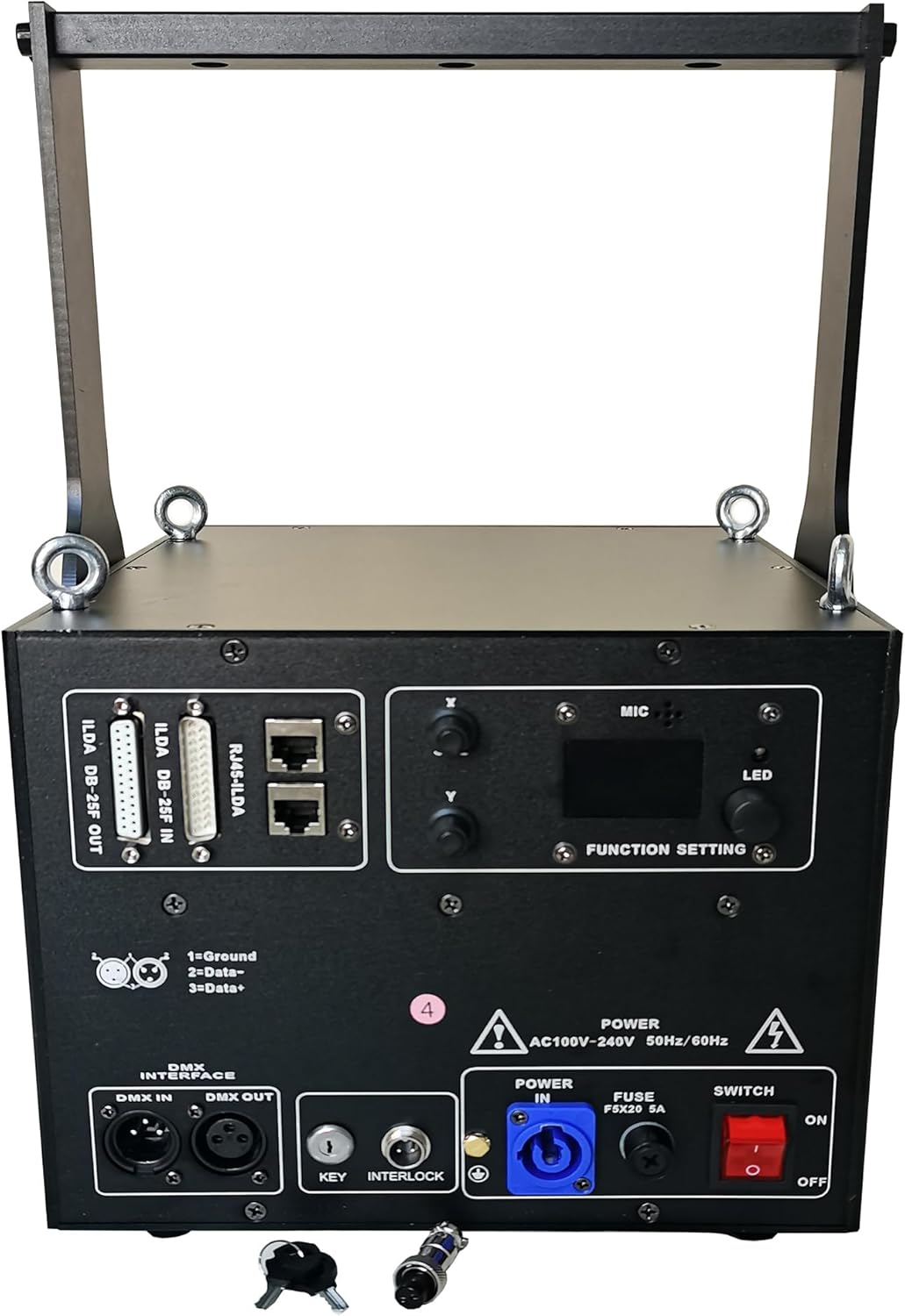 • Control mode: ILDA standard computer light software/DMX512/auto/sound control/master-slave