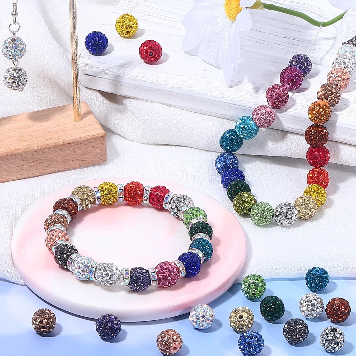 • DIY HANDMADE: Rhinestone clay beads, with a hole of about 1.8 mm and a sphere diameter of 10 mm, are easy-to-string beads and are suitable for most Beads for Crafting jewelry scenes. They can be used for necklaces, baseball friendship bracelets, earrings, and beaded pens Handmade accessories such as keychains can also be matched with other spacer beads for diversified handmade creations