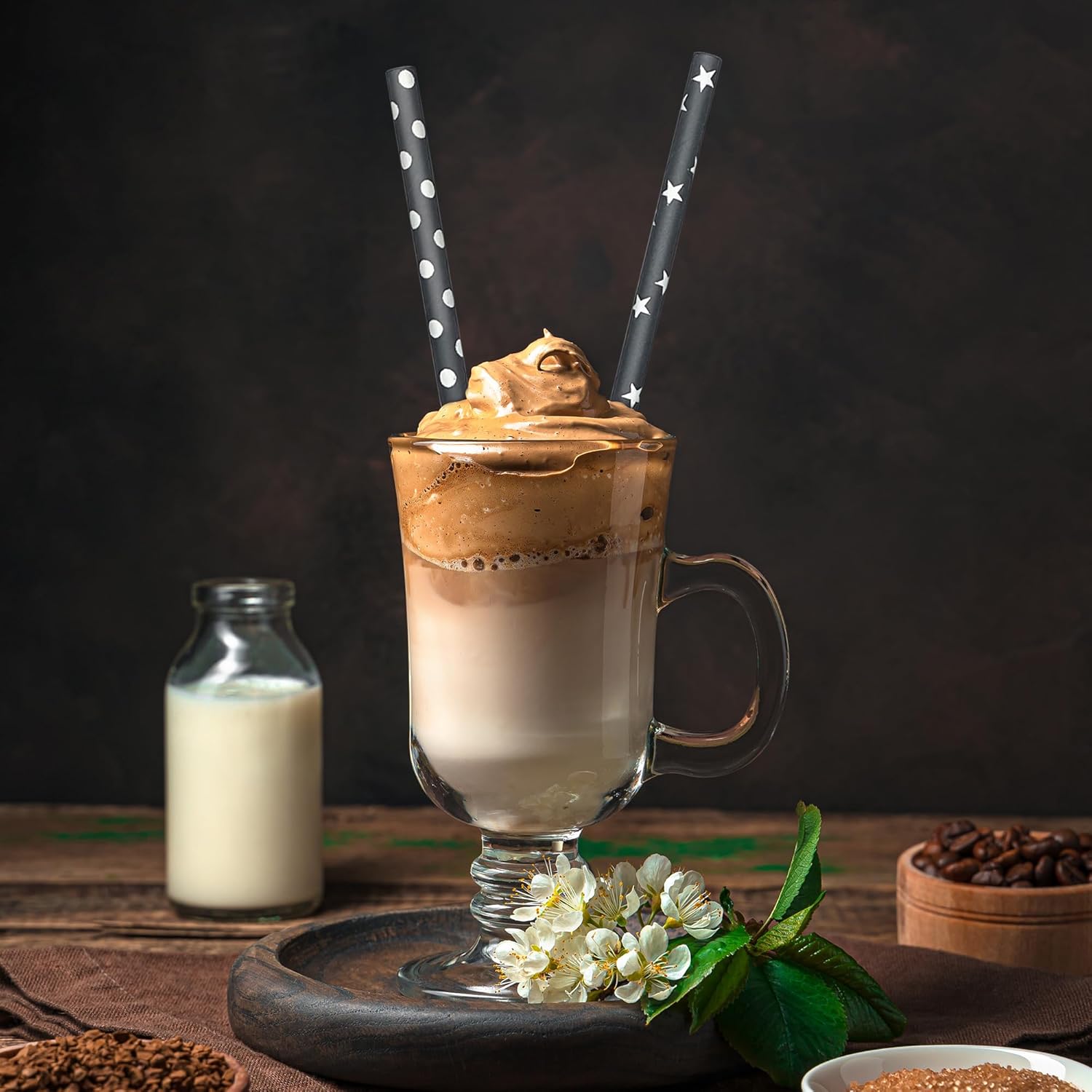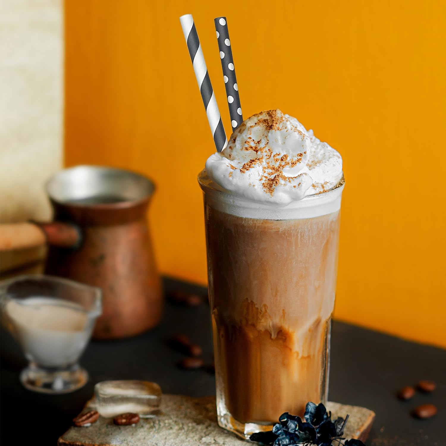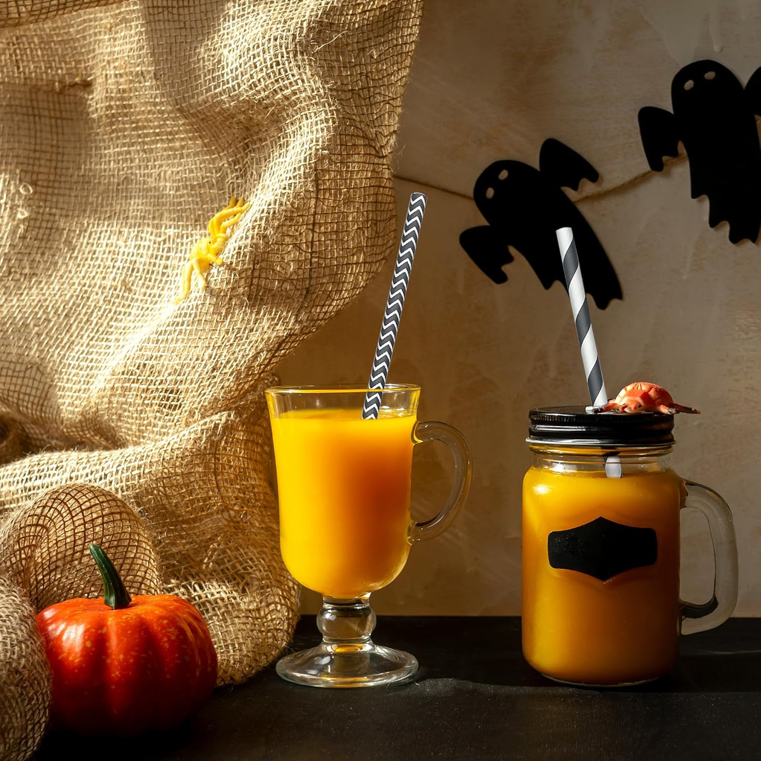 200 Black Straws, Biodegradable Black and White Paper Striped Straws for Birthdays, Coffee, Cocktail, Lemonade, DIY Decorations, Party Supplies, Weddings, New Year, Halloween, Christmas
