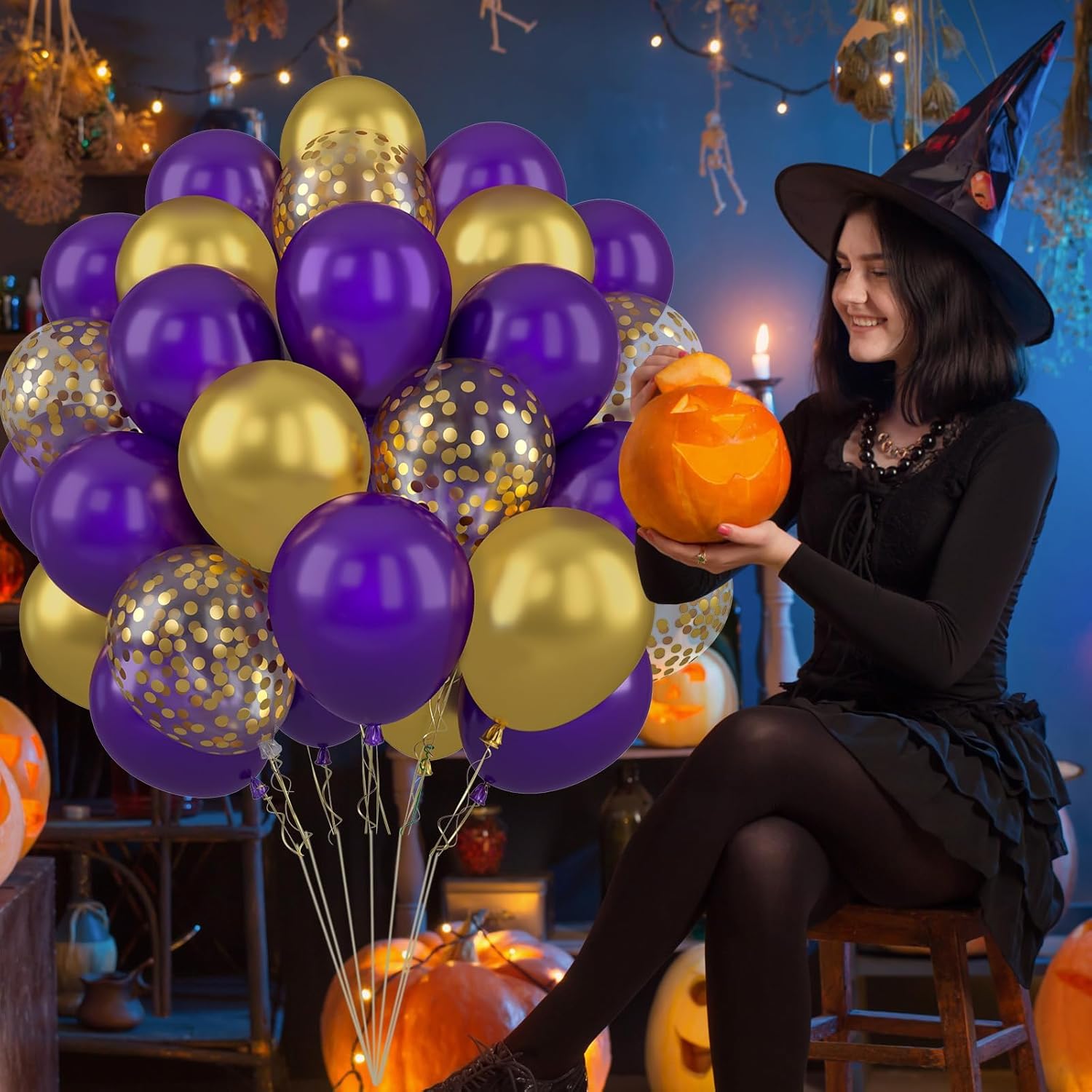• What You Get - The purple gold balloons include 50 balloons, 3 distinct colors: dark purple balloons x 36, metallic gold balloons x 8, confetti gold balloons x 6. Accompanying by a 10m ribbon. These striking and captivating hues will beautifully enhance your memorable and enjoyable moments!