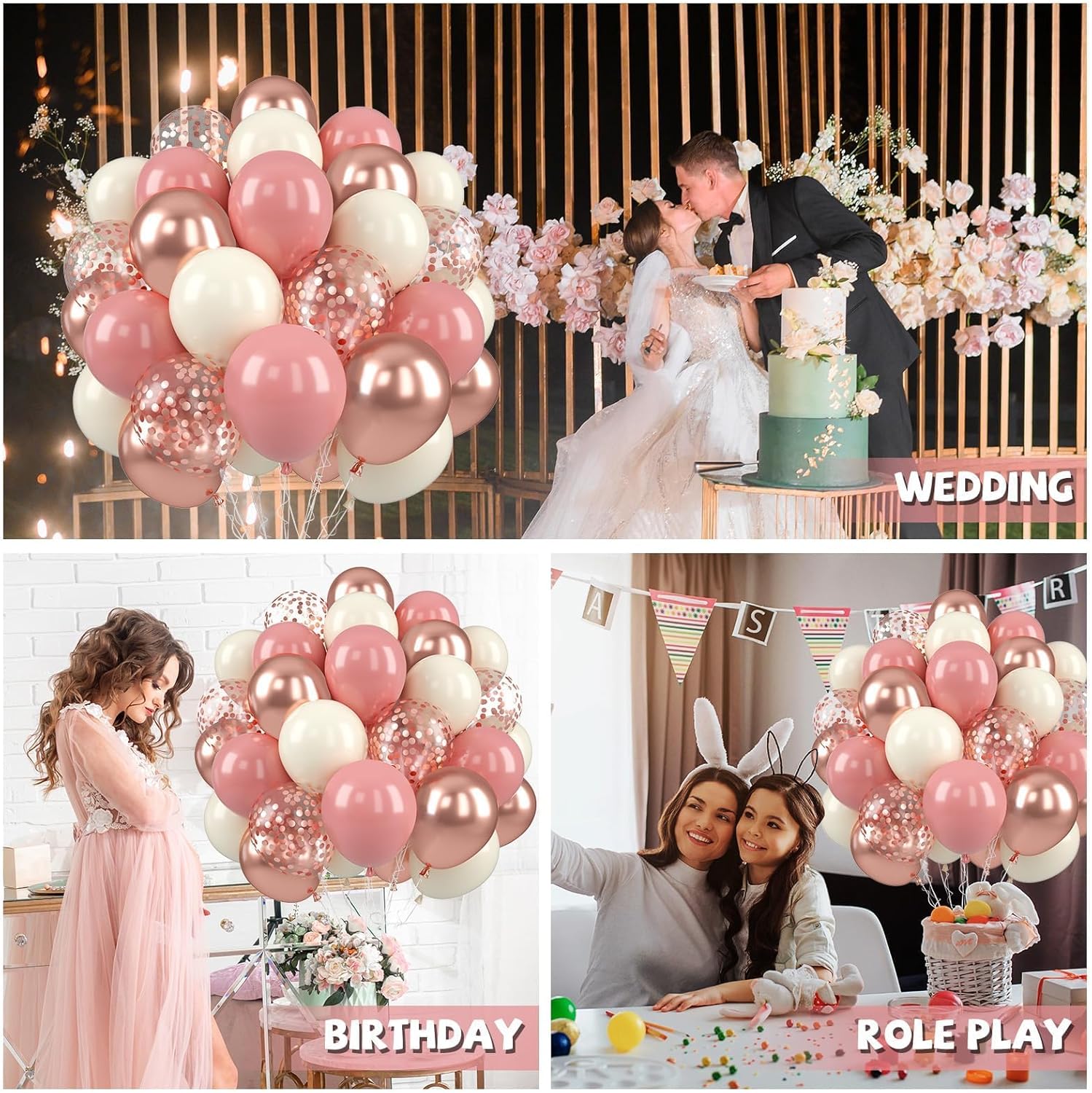 • For Most Scenarios - Graduation, baby showers, and girls' birthday parties bridal gathering, it is easy to embellish door frames, doorways, hallways, ceilings, walls or other ideal places. Pink balloons with metallic gold balloon are overflowing with elegance and joy, bringing a different atmosphere to anniversaries, weddings, and more.