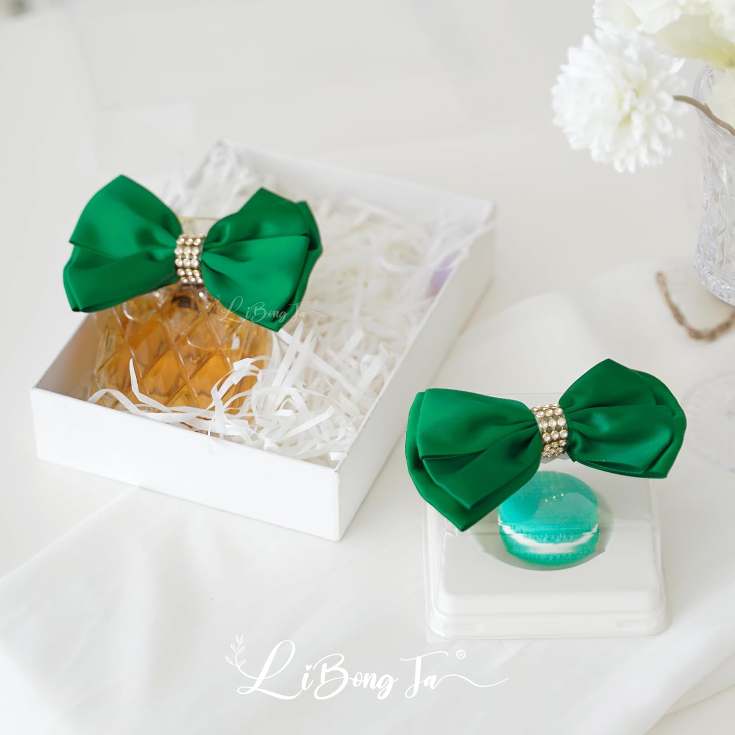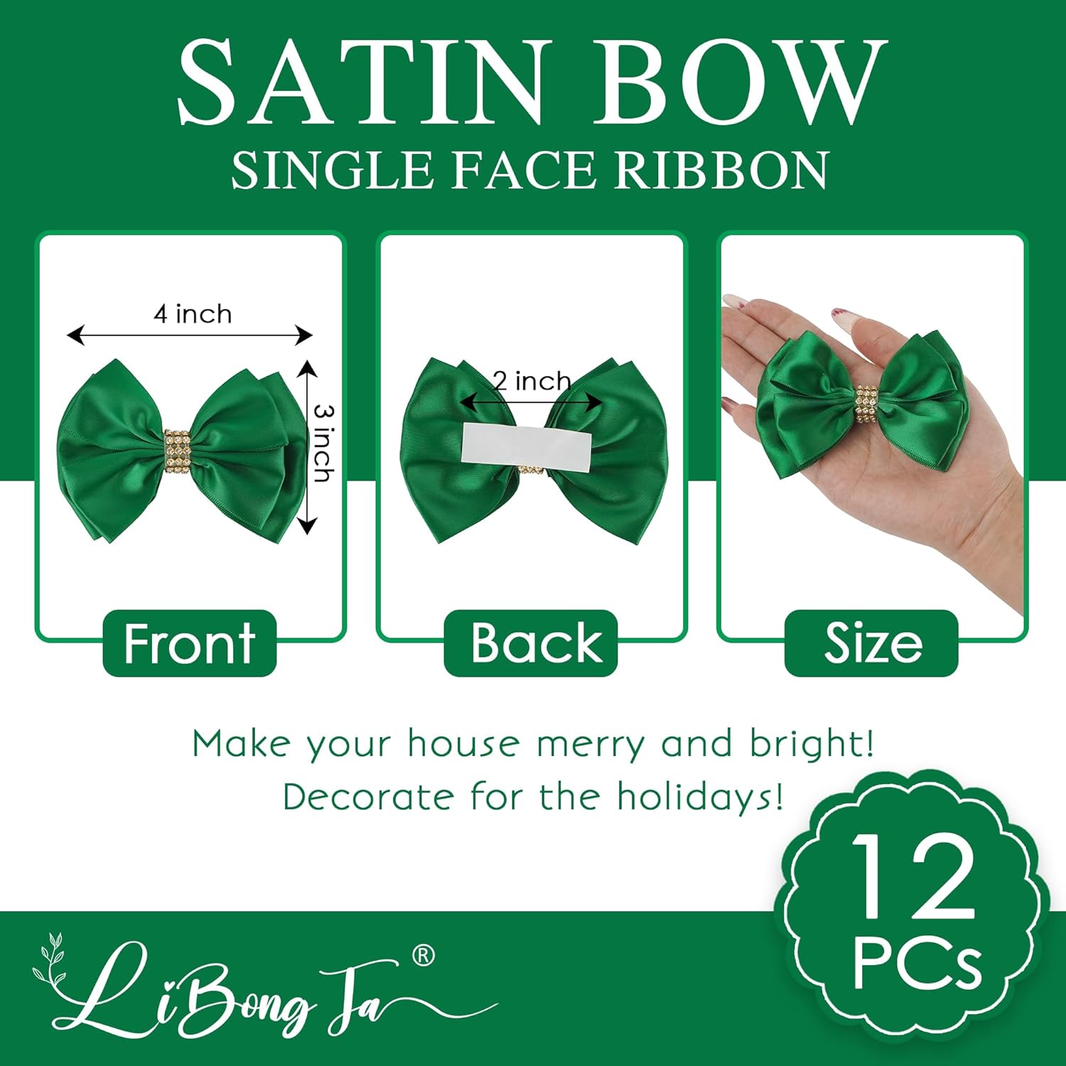 Hunter Green Ribbon Bows 4'' Premade Satin Bow, Gift Bows with Rhinestone, Wrapping Bows for Presents, Greeting Cards, Treat Bags, Wine Bottles, Valentines Bows for Gift Wrapping-12 Counts