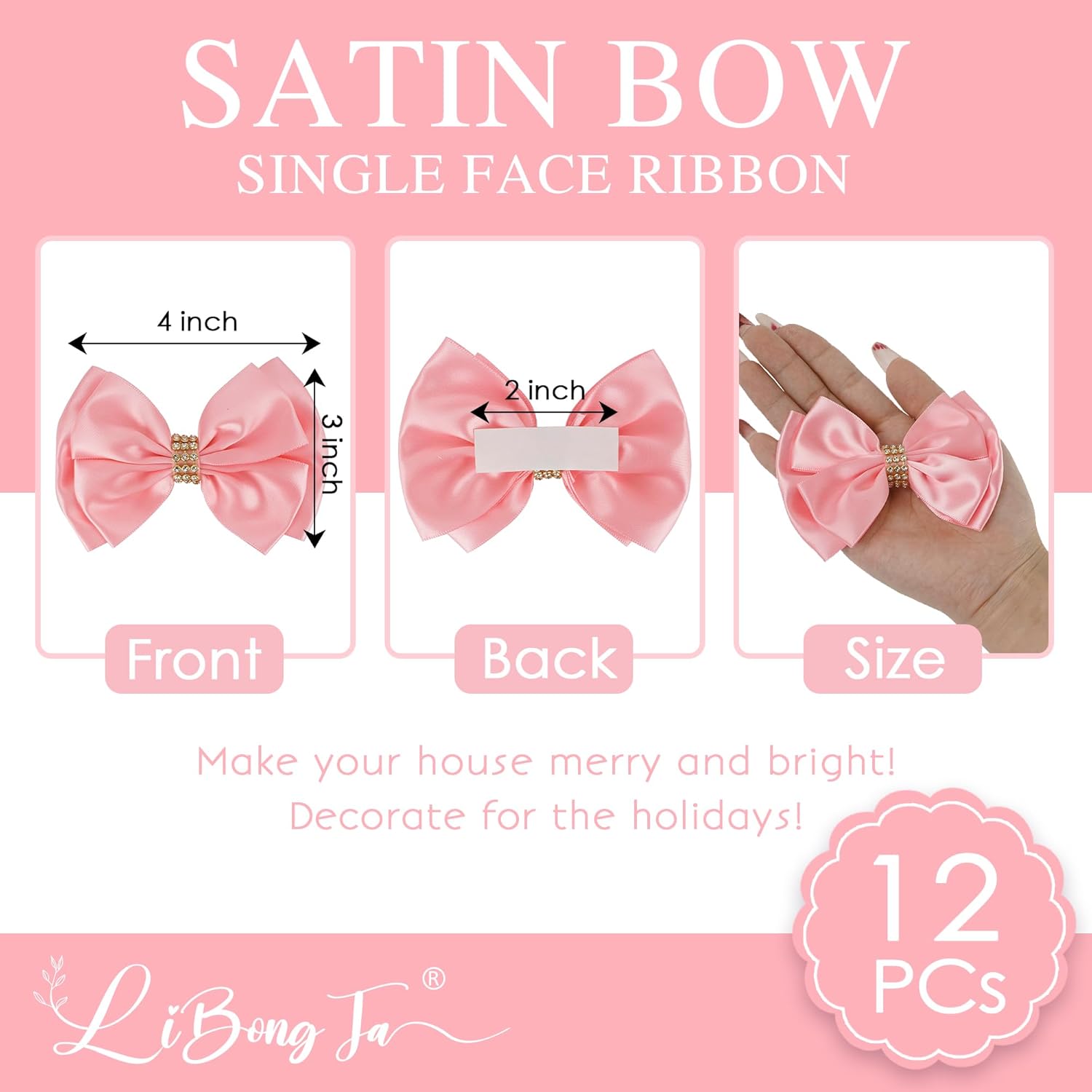 • Versatile decoration! Perfect for any occasion! These satin ribbon bows are great for decorating parties, baby shower, Christmas Day, weddings, and events. Make your decorations pop! Make your gifts thoughtful as well as visually appealing!