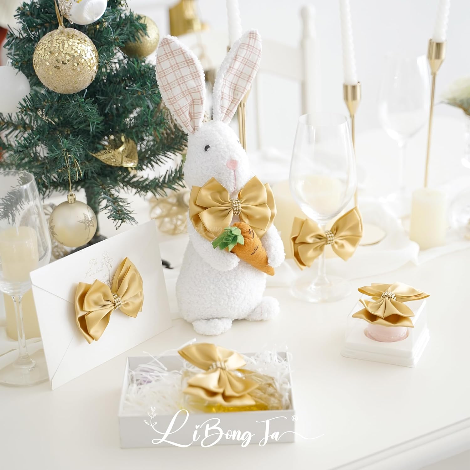 Gold Bows 4'' Premade Satin Ribbon Bow, Gift Bows with Rhinestone, Wrapping Bows for Presents, Greeting Cards, Treat Bags, Wine Bottles, Valentines Bows for Gift Wrapping-12 Counts