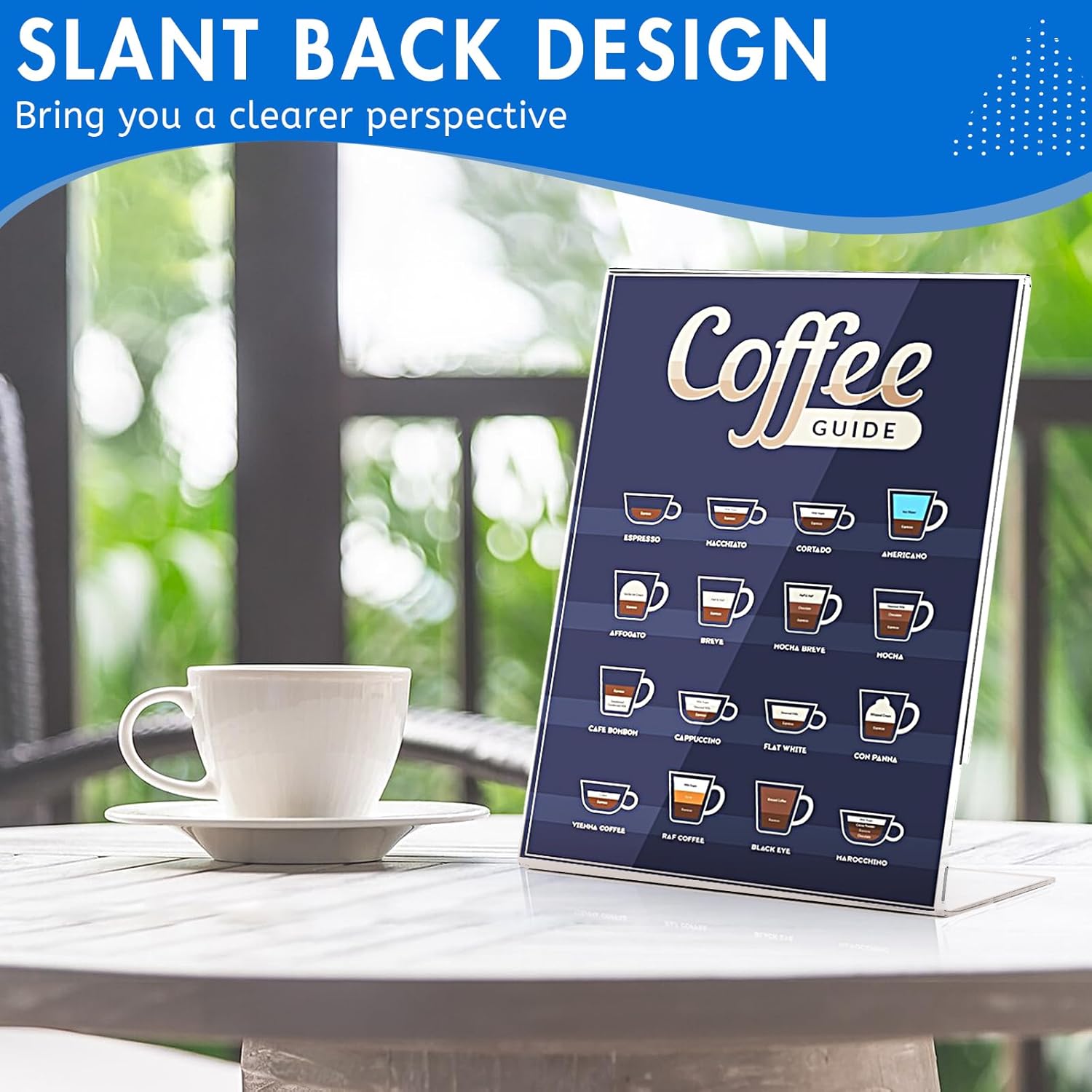 • Slant Back Design: The acrylic sign holders are designed with a slant back and tilts at a perfect angle to display the information on the paper, whether it's a guideline message or a dish. The bottom of the 5x7 acrylic sign holder is supported by an anti-tilt base for stability. Note: In order to ensure that you receive the most perfect plastic frames, we have attached a protective film on the surface of each acrylic paper stand, please remove the film before use