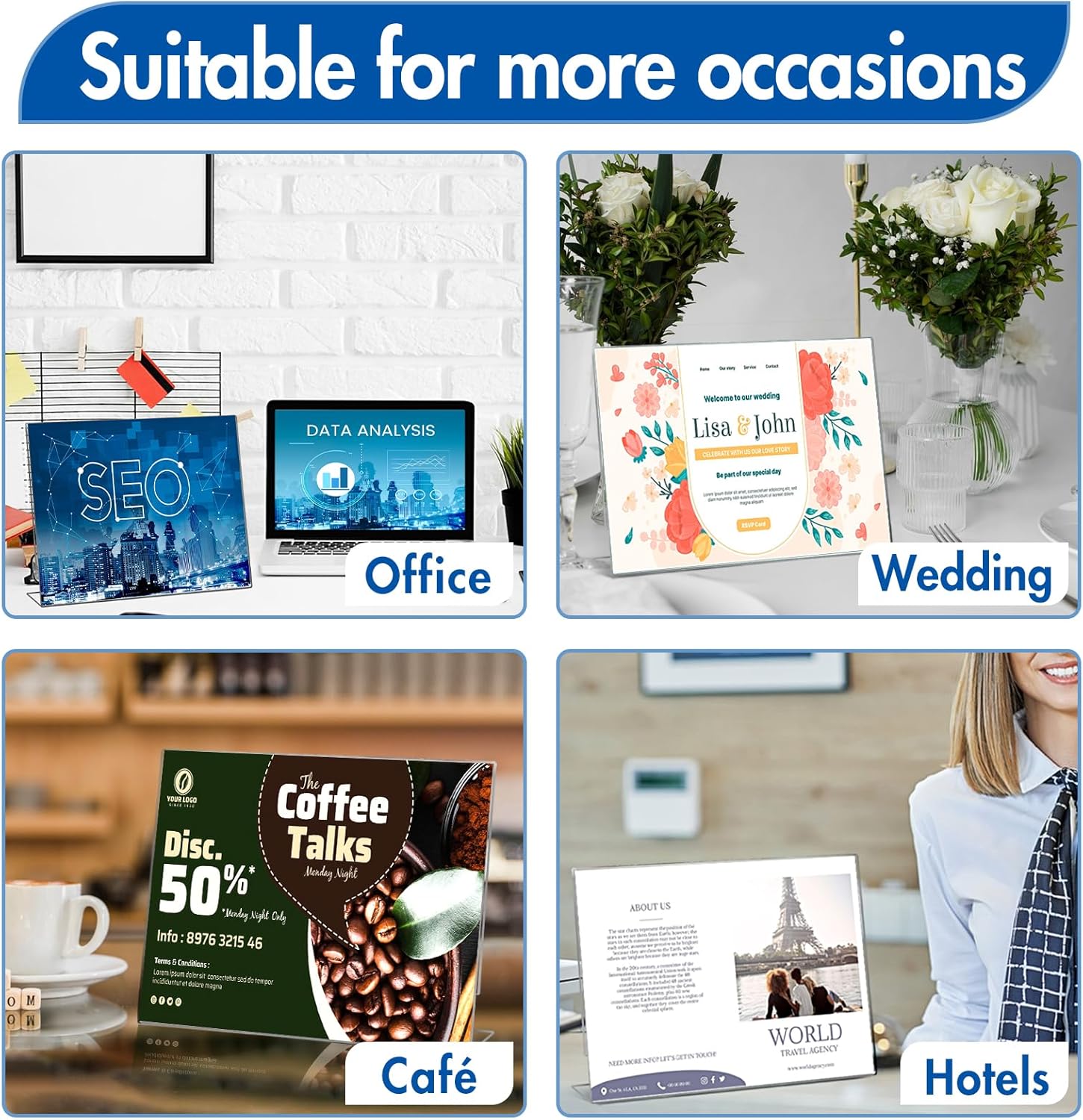 • Widely Used: The clear picture stands for display has a minimalist design and a stylish and practical style. Whether it's a serious office or a festive wedding, it's a perfect fit. Suitable for various occasions such as wedding table list display, dining table number placement, cafe or restaurant menu display, hotel front desk guidance, office daily file use and so on