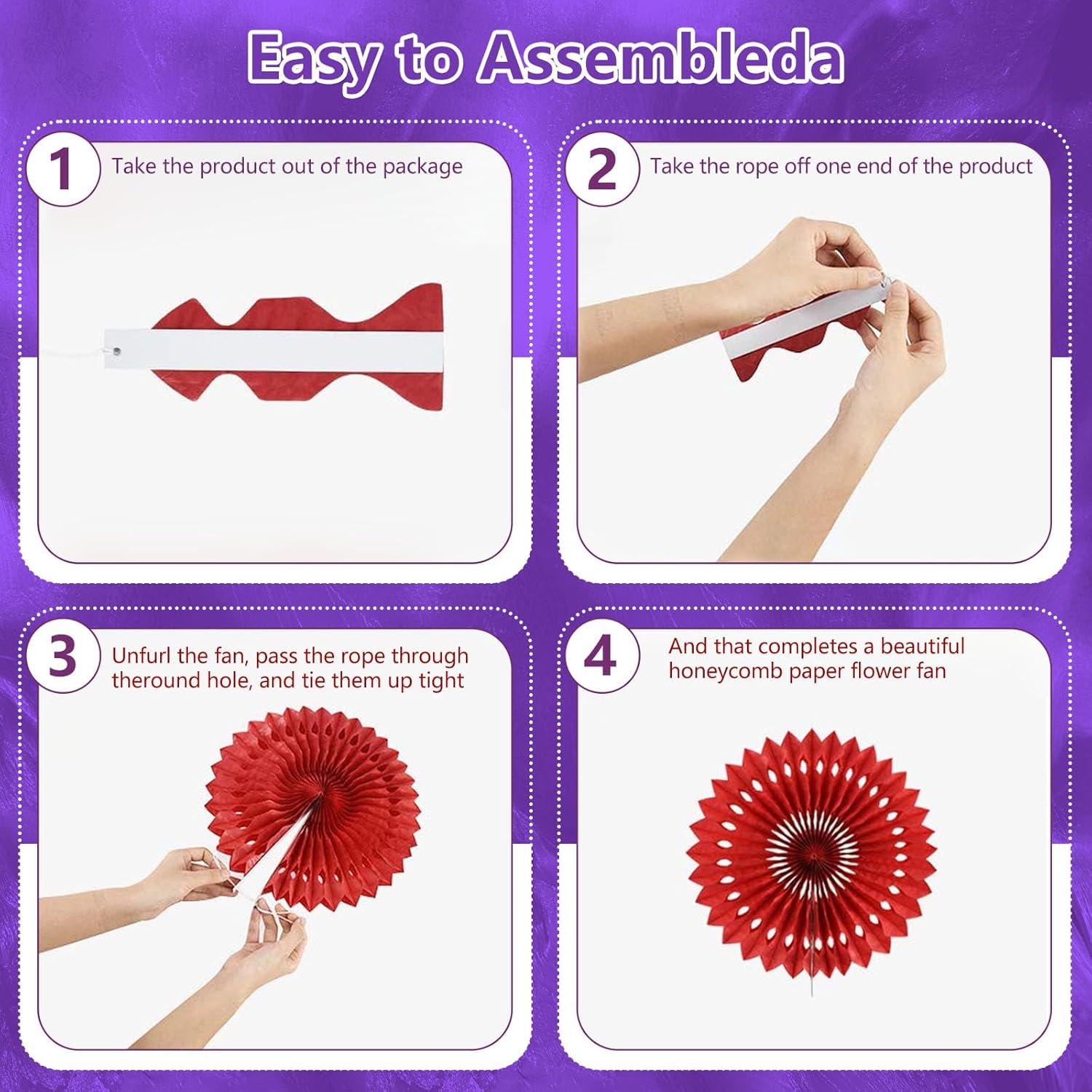 • 【Hanging paper fan set】Paper fan set includes 20 paper fans of different sizes, among which the paper flower fan size is 14 inches * 3, 12 inches * 5, 8 inches * 6, and 6 inches*6.