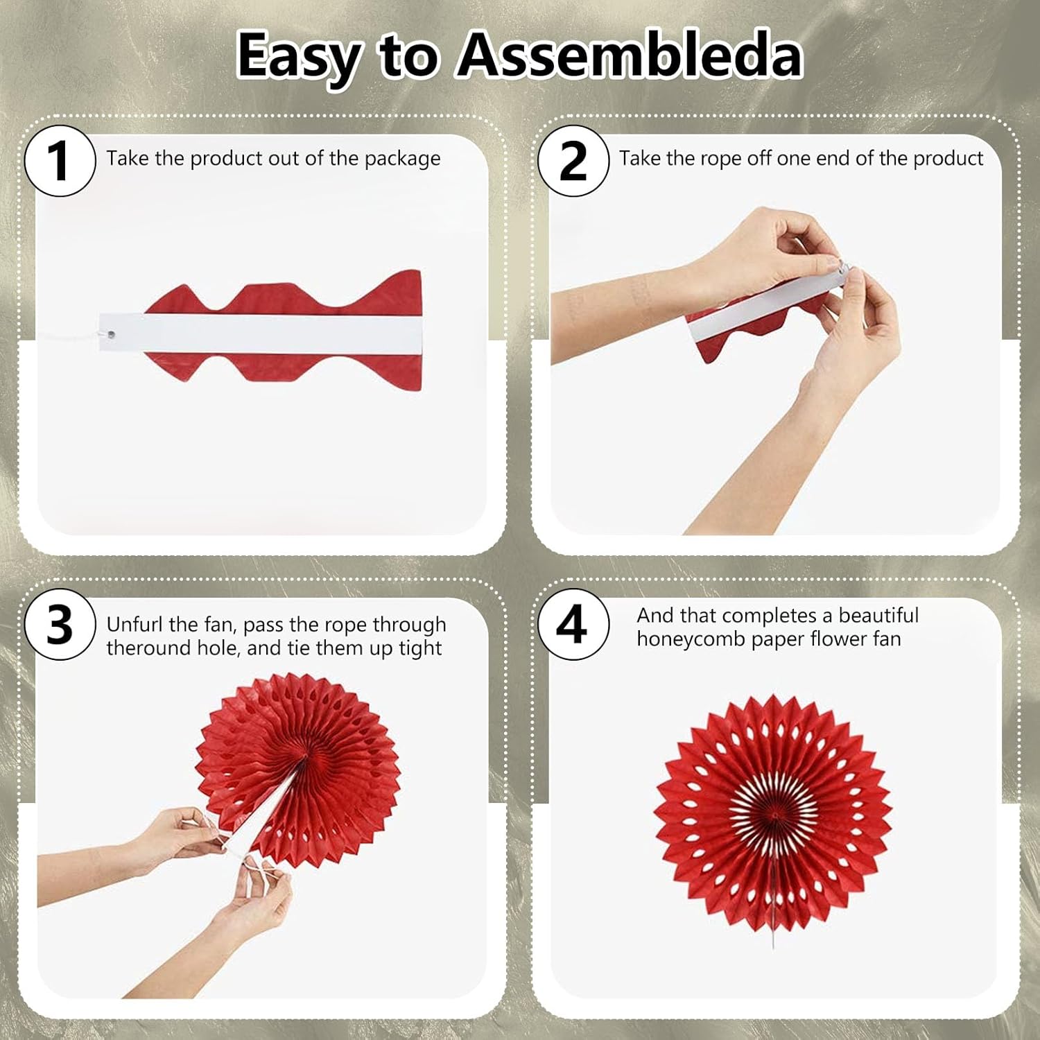 • 【Hanging paper fan set】Paper fan set includes 20 paper fans of different sizes, among which the paper flower fan size is 14 inches * 3, 12 inches * 5, 8 inches * 6, and 6 inches*6.