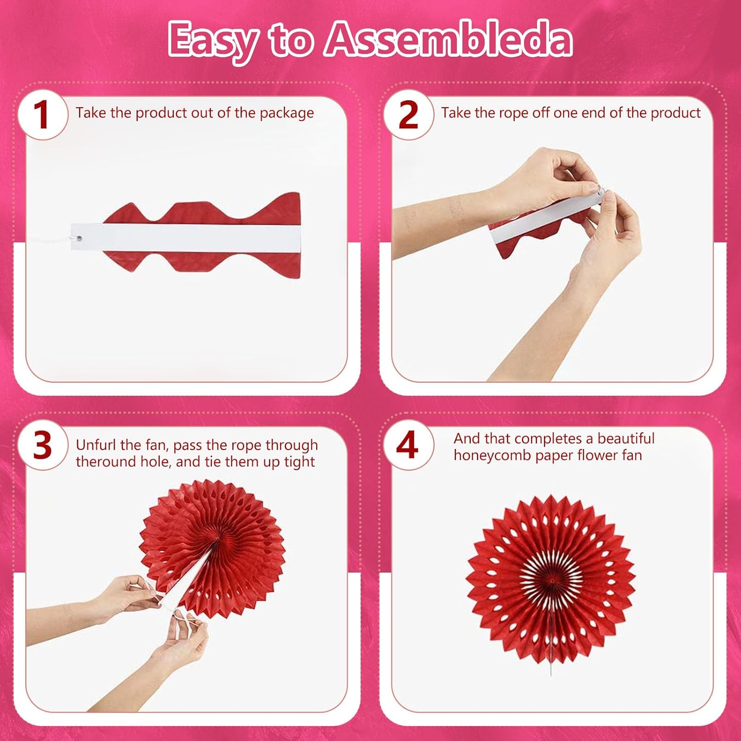 20 Pcs Rose Red Hanging Paper Fan, Hanging Honeycomb Round Paper Fans for Weddings, Birthdays, Easter, Baby Showers, Classroom, Events Ceiling Party Supplies Decorations