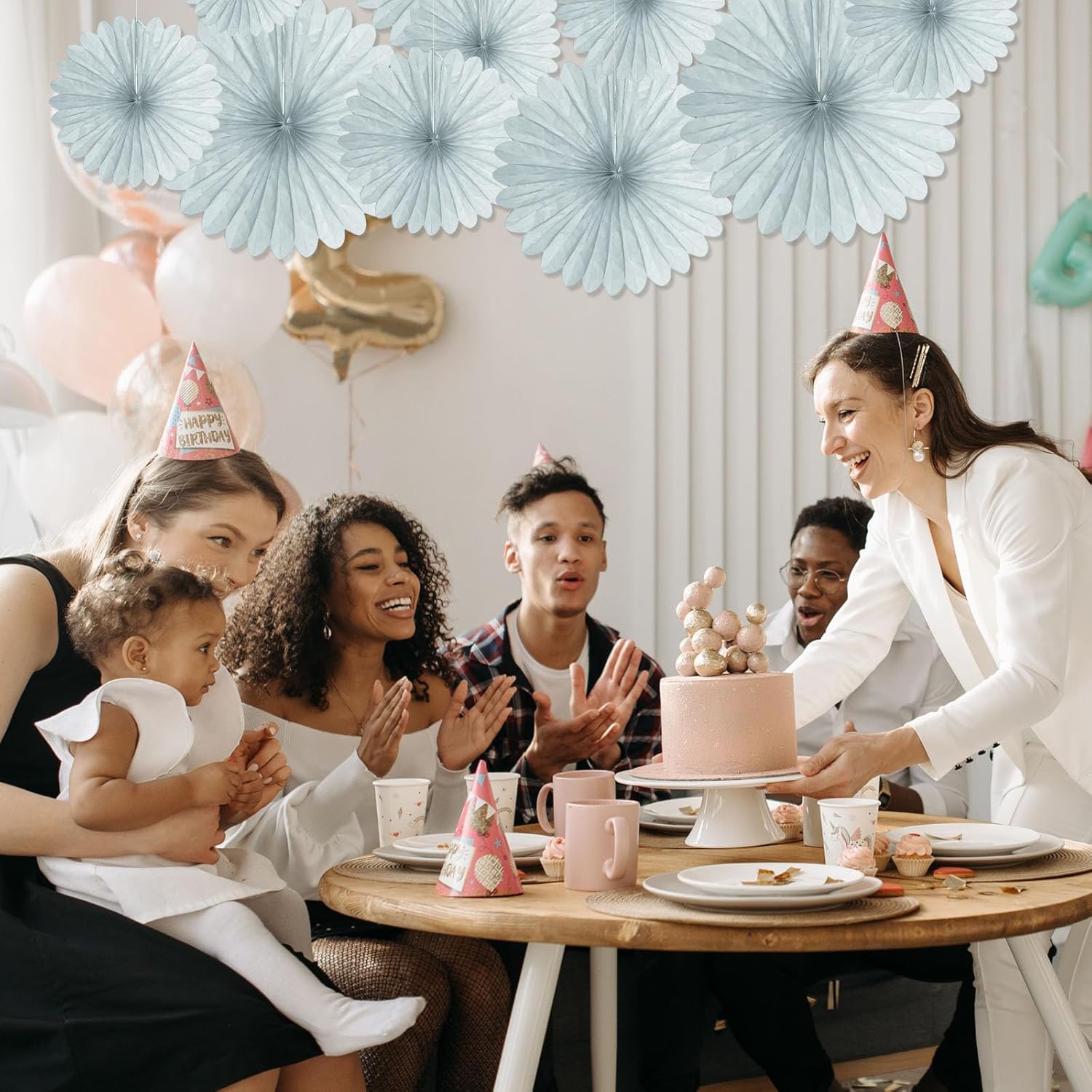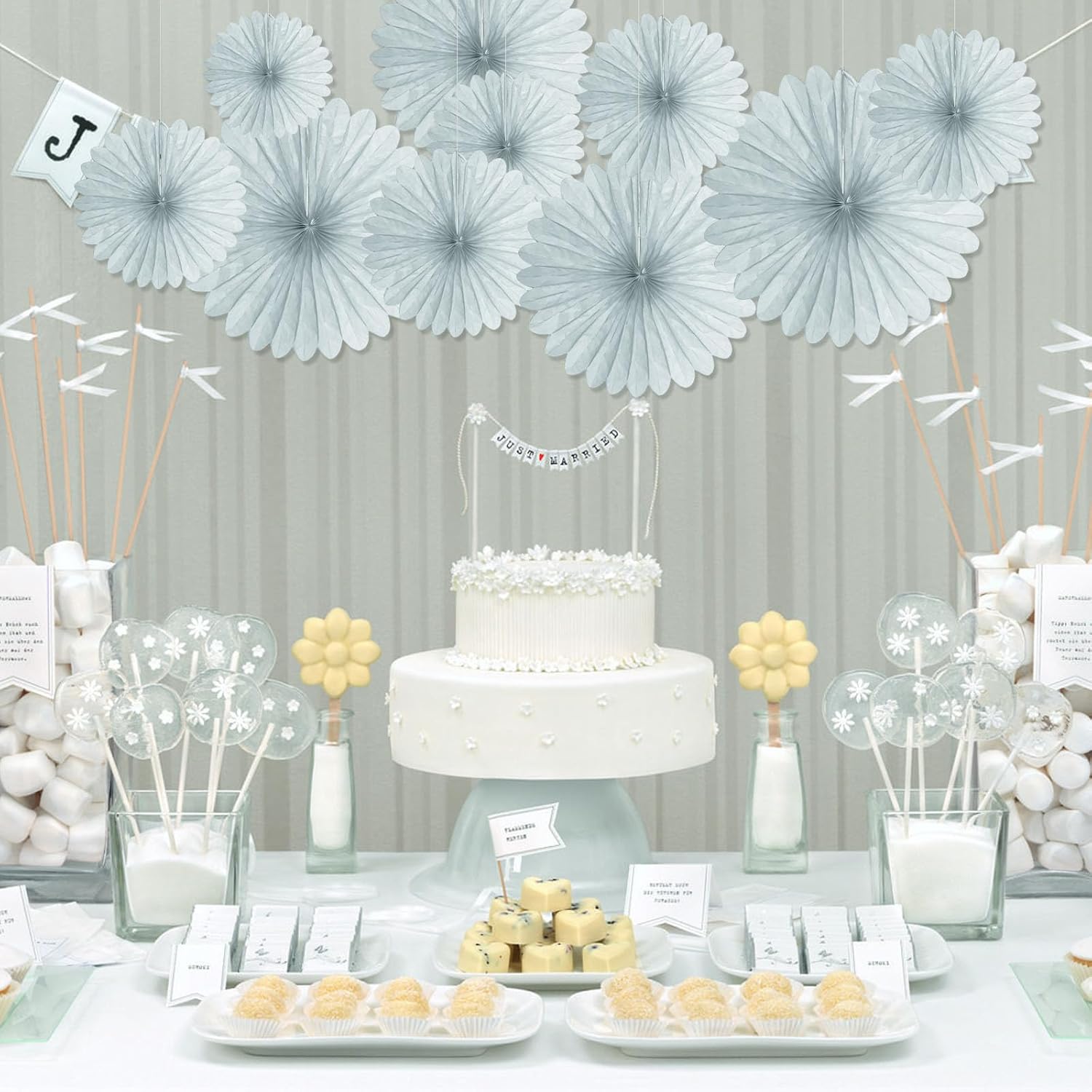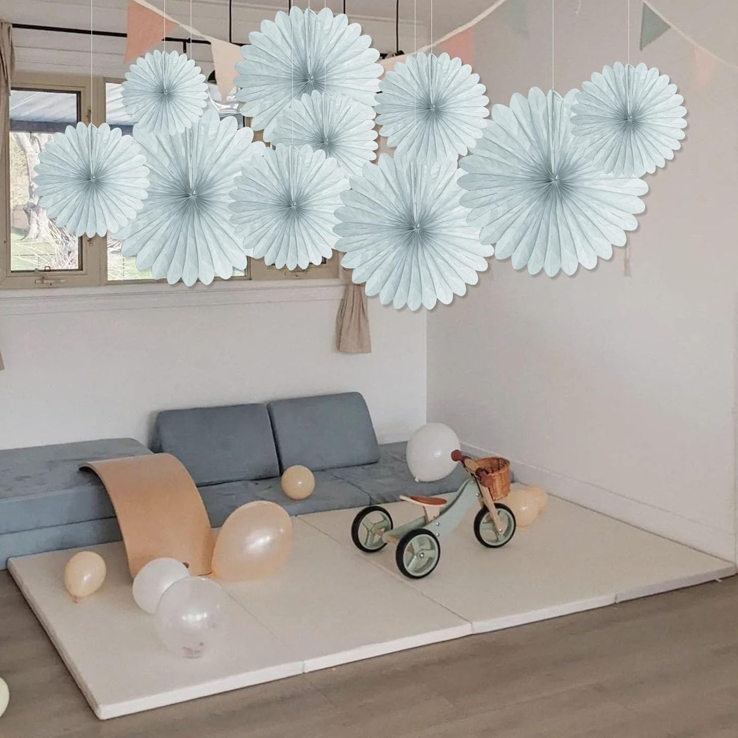 • 18 Pcs Gary Hanging Paper Fan, Hanging Honeycomb Round Paper Fans, Paper Fan Decorations for Weddings, Birthdays, Christmas, Baby Showers, Classroom, Bachelor Ceiling Paper Party Supplies