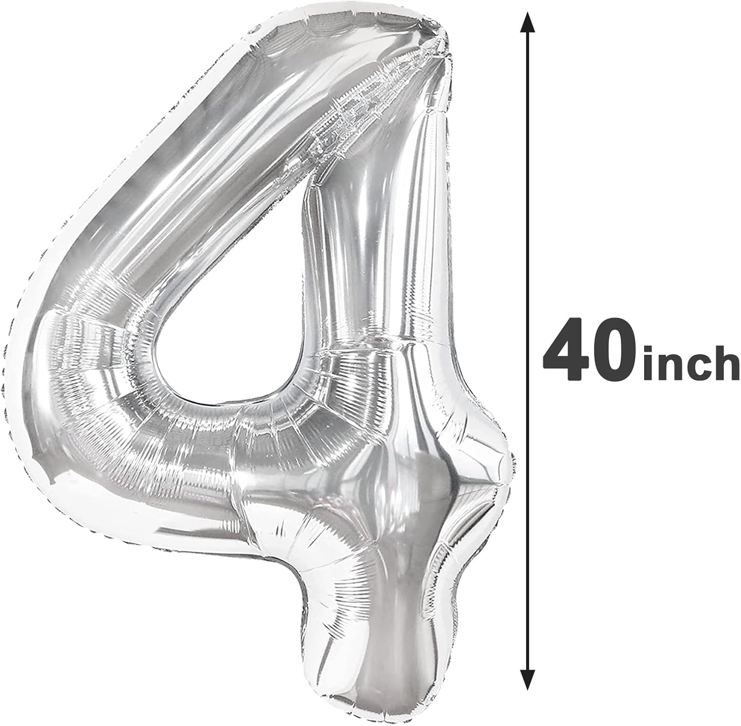 40 Inch Silver Large Number 4 Birthday Balloon, Giant Number Four 14 24 34 40 44 Balloons, Foil Mylar Big Balloons for Anniversary Graduation Supplies Decorations
