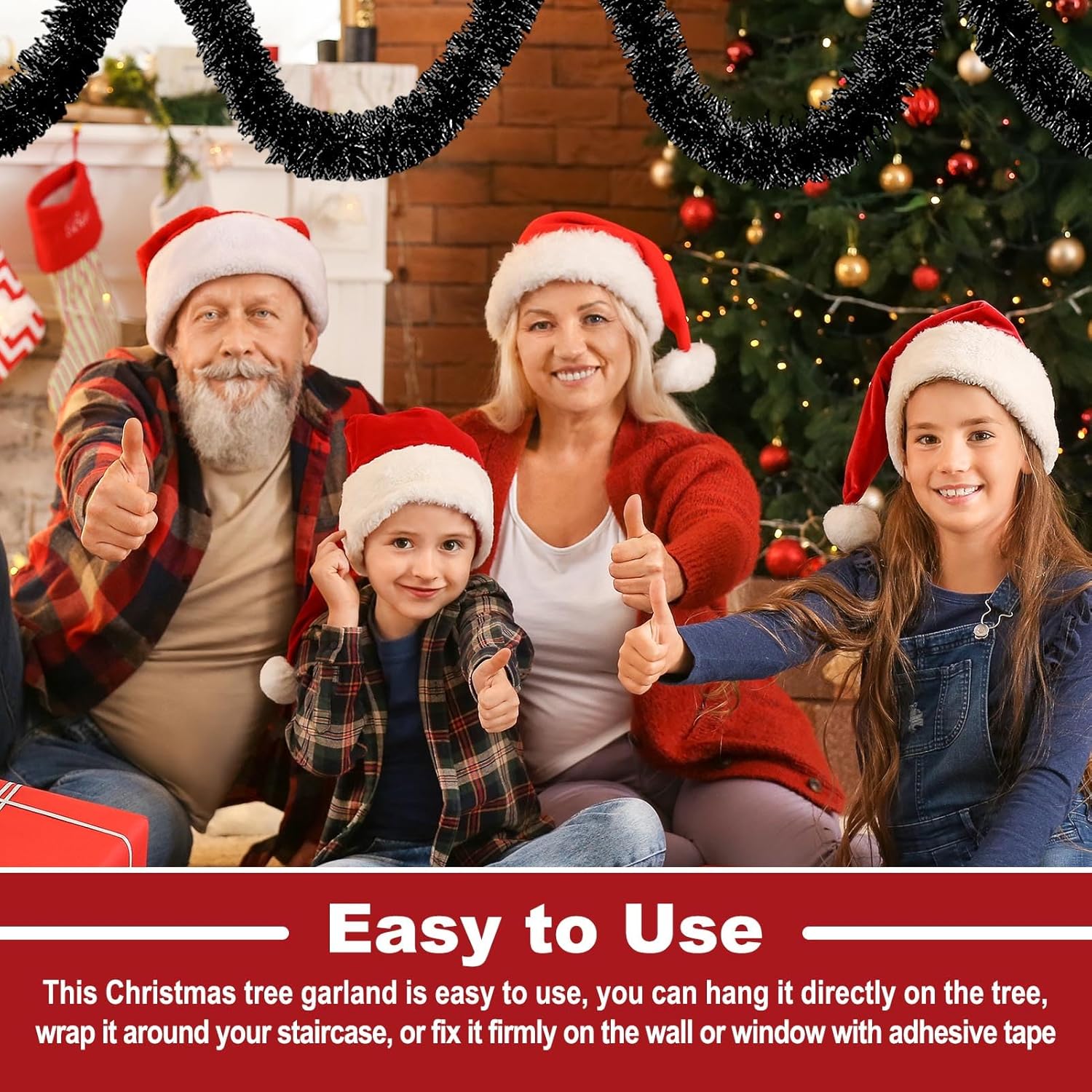 25 Feet Metallic Twist Tinsel Garland - Wall Hanging Backdrop for Parade Floats, Christmas Eve, New Year, Valentine's Day Parties (Black, 4in x 25ft)