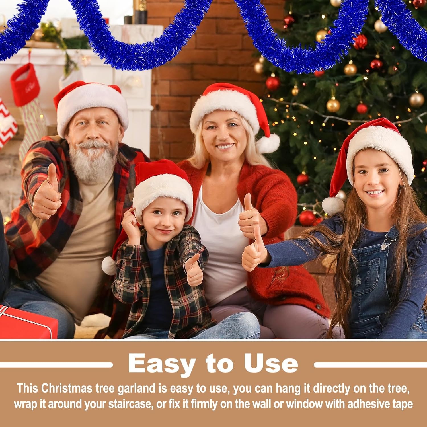 • Easy to Hang: Christmas tinsel garland include a soft, bendable wire inside, and easy to shape as different looks. You can also trim it into different sizes, twist them into various shapes as you like, or with the tape stick it on the wall, window, table, door, rail or any place you like, show the christmas glamour to make your party decoration for the home fun