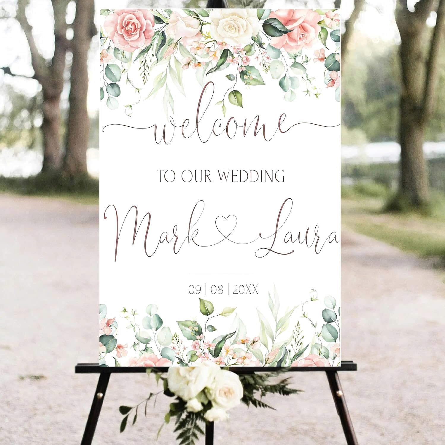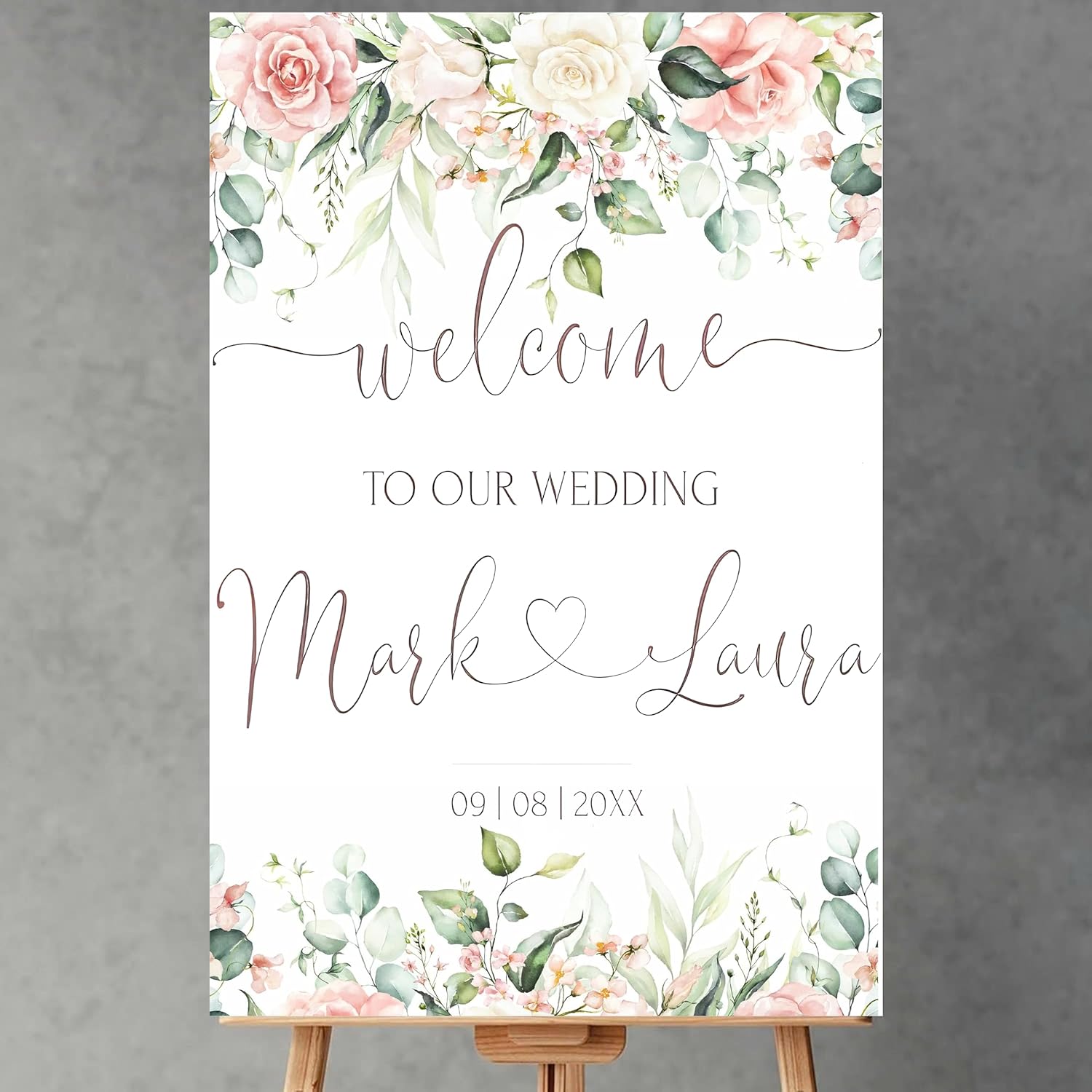 Personalized Wedding Welcome Sign, Welcome To Our Wedding Sign, Blush Pink Wedding Welcome Sign | Soft Pink Editable Welcome Poster | Floral Printable Wedding Welcome Board | Editable Wedding Sign