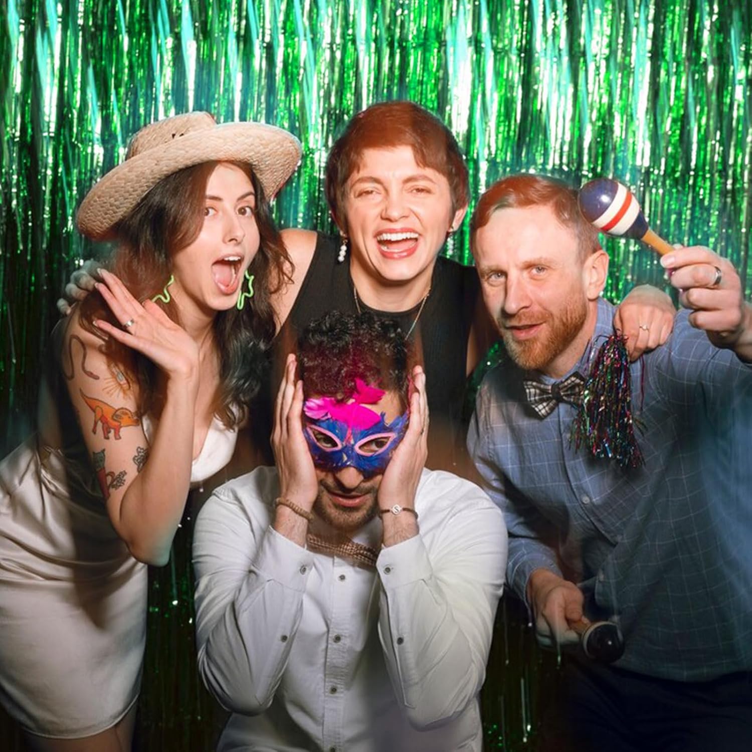 • Material: The metallic tinsel backdrop is made of tinsel with shiny surface, durable material can be reused. Good for adding sparkle as decorations for parties.