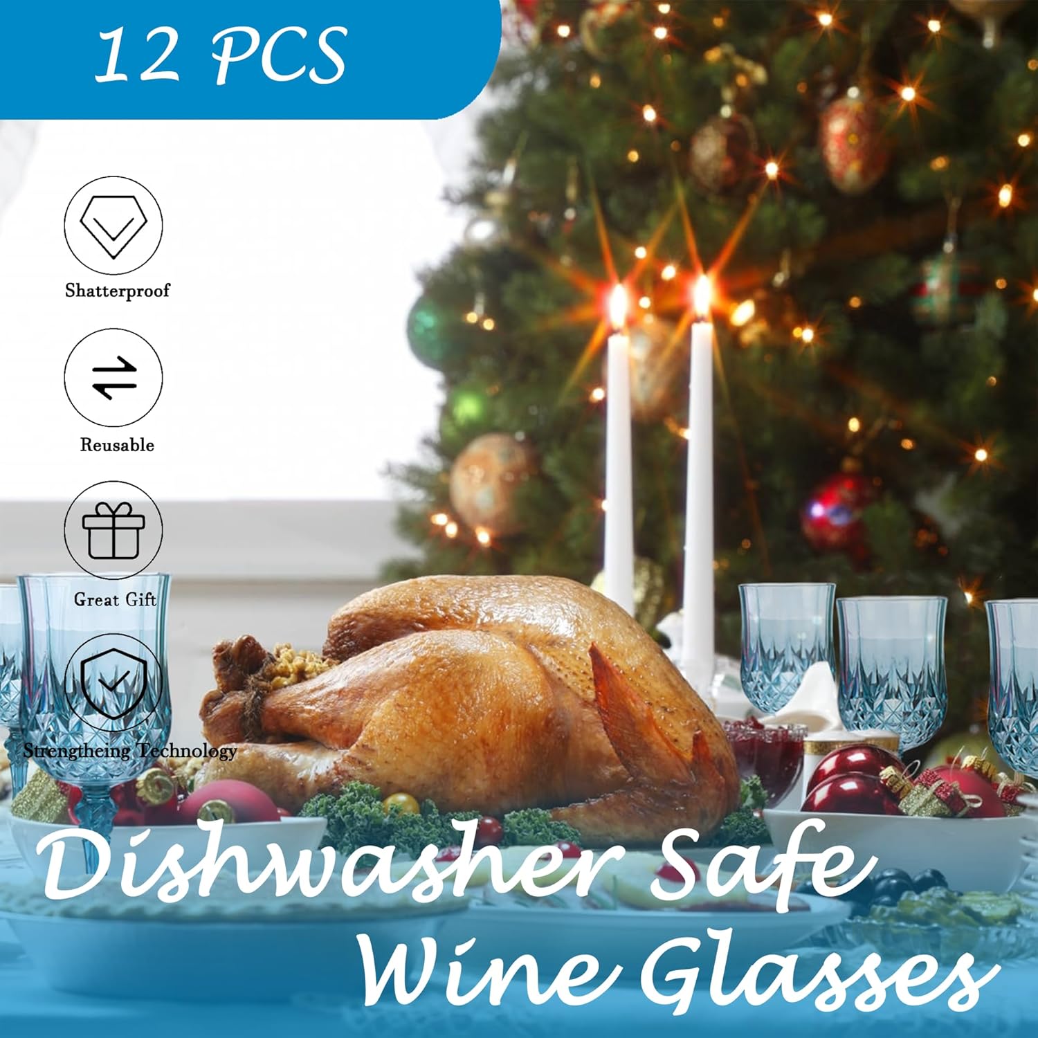 Plastic Wine Glasses,Plastic Goblets Vintage Style Cordial Drinking Glasses for Wedding Reception, Grand Event Party Supplies (12, Dusty Blue)