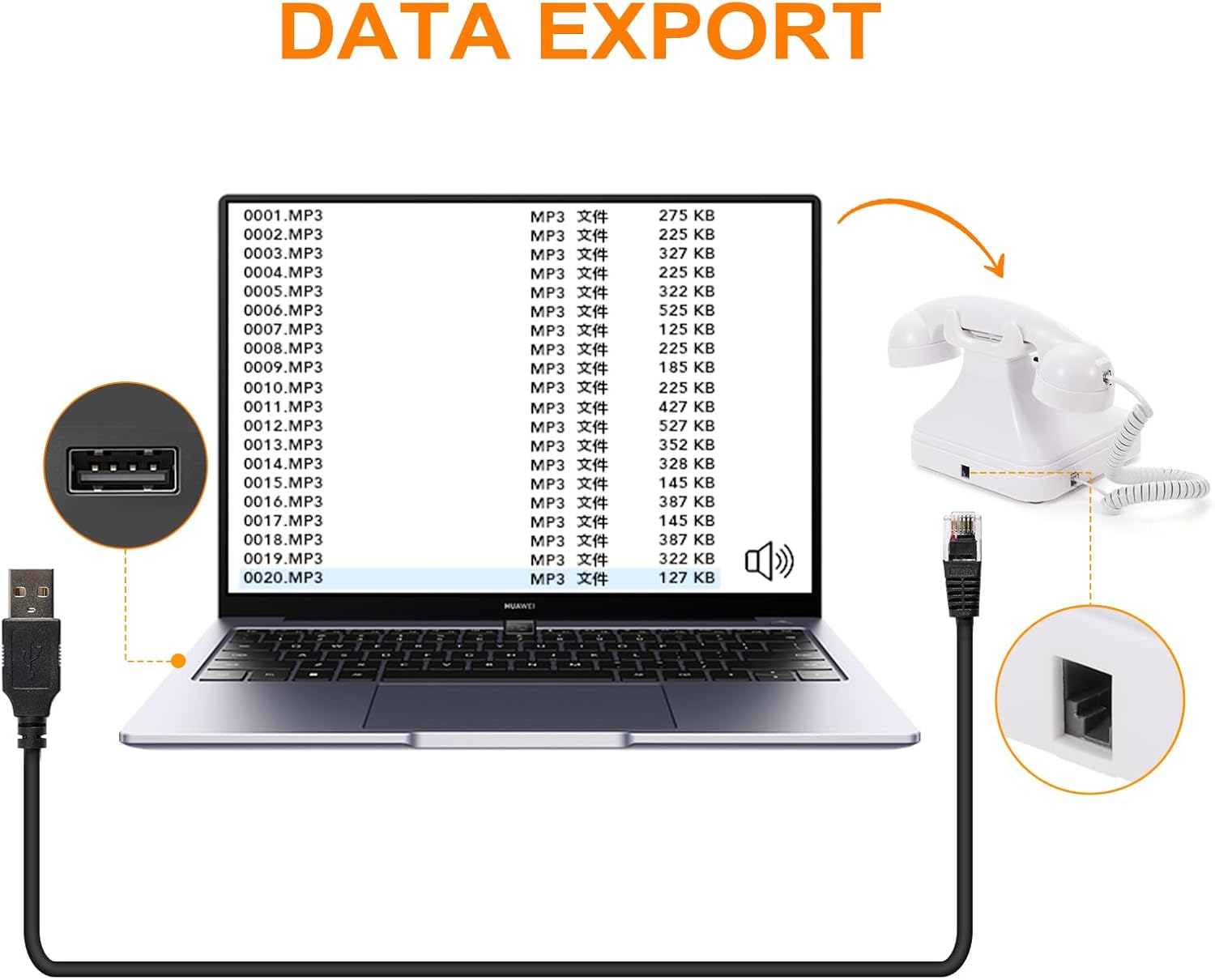 • 【Easy to Use】 Pick up the handset, according to the built-in voice prompt button can save or play back the recording, easy to operate, after recording, connect the data cable to the guest book phone and the computer can export all message data storage.